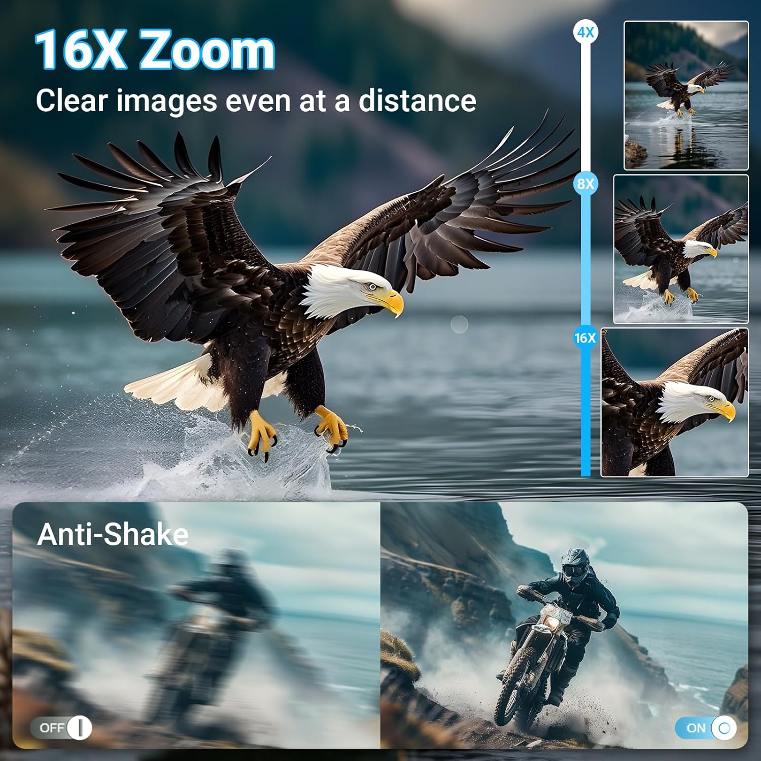 【16X Digital Zoom & Anti-Shake】Designed for stable shooting, this point and shoot digital camera offers 16X digital zoom for flexible framing—great for both distant landscapes and close portraits. The built-in anti-shake function reduces blur and motion noise, ensuring clearer photos and smoother videos, even when shooting handheld, walking, or in dynamic environments.