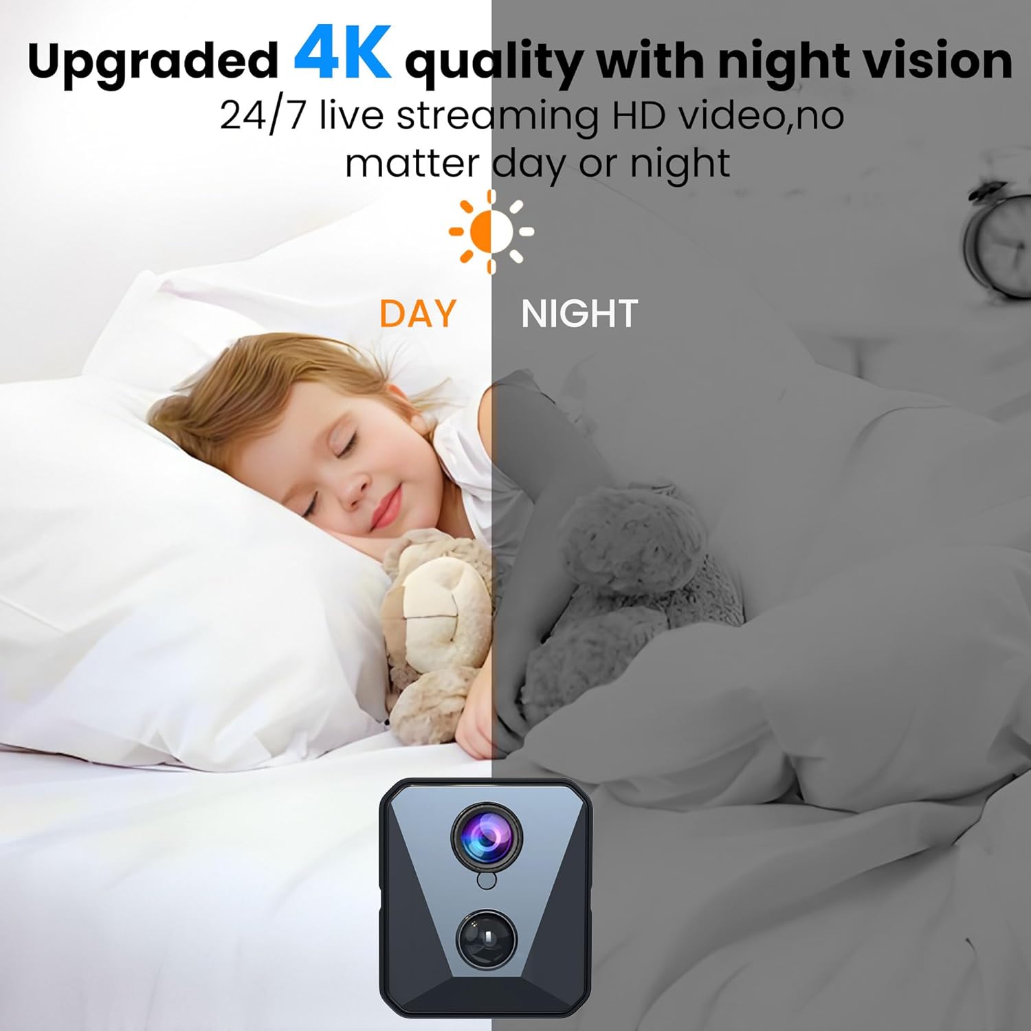 【2K Ultra HD with Night Vision & Wide-Angle Lens】Enjoy crystal-clear 2K resolution with enhanced image quality for sharper indoor surveillance. Perfect for monitoring your home, pets, or loved ones in high definition.See clearly, even in complete darkness.The 120-degree wide-angle lens captures a broader view of your space.