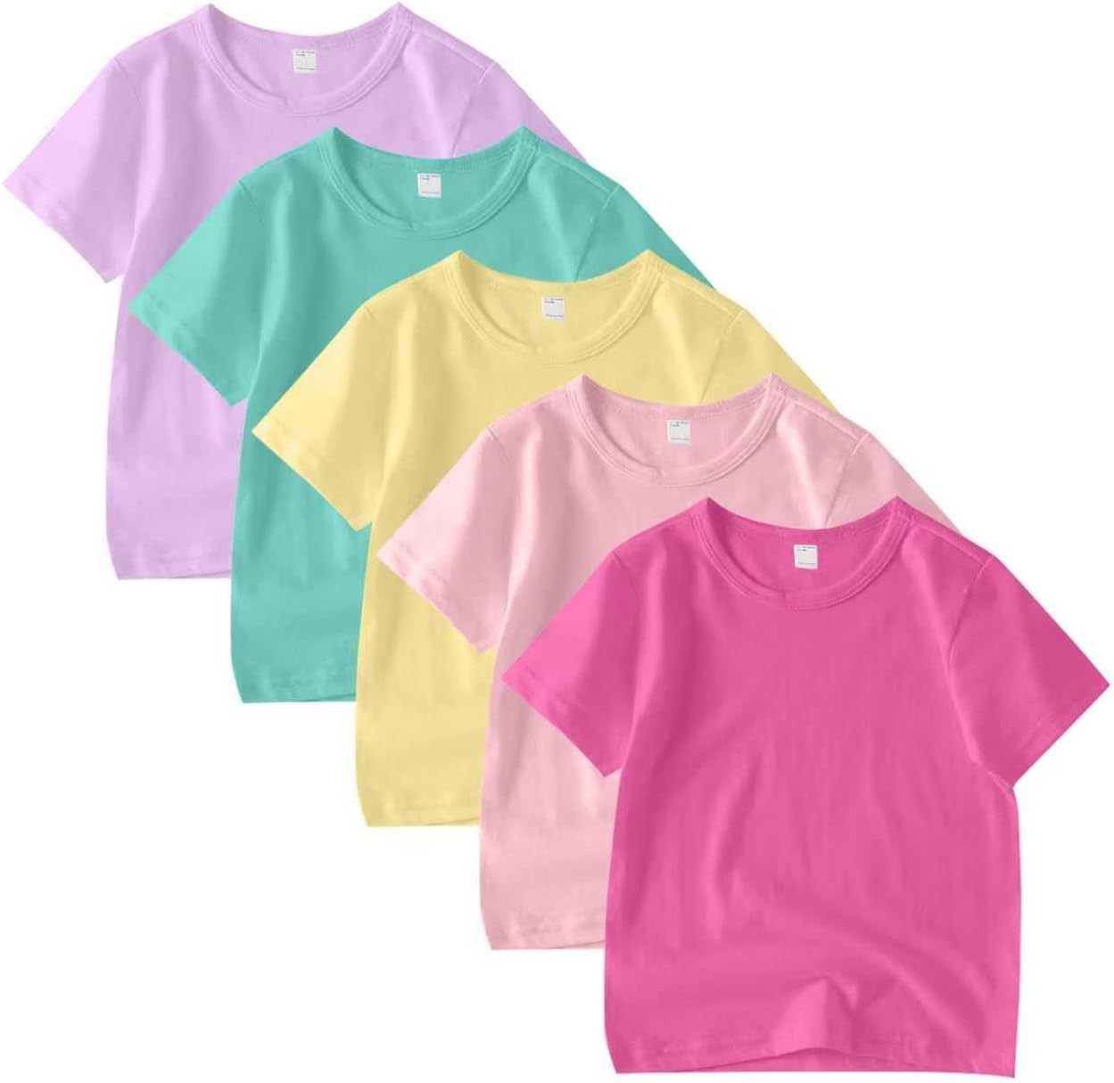 5 Pack Kids T-Shirt Cotton Short Sleeve Tee Shirts for Unisex Boys and Girls Toddler Summer Crew Neck Tops