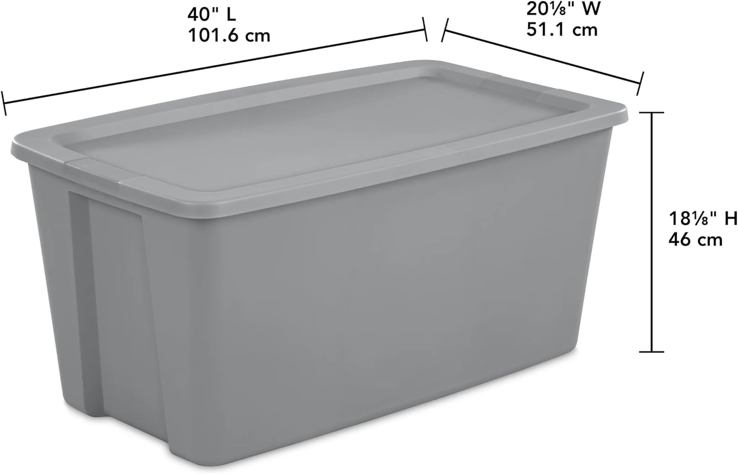 50 Gallon Extra-Large Storage Bin, Gray Plastic Tote with Snap-on Lid for Garage & Household Organization