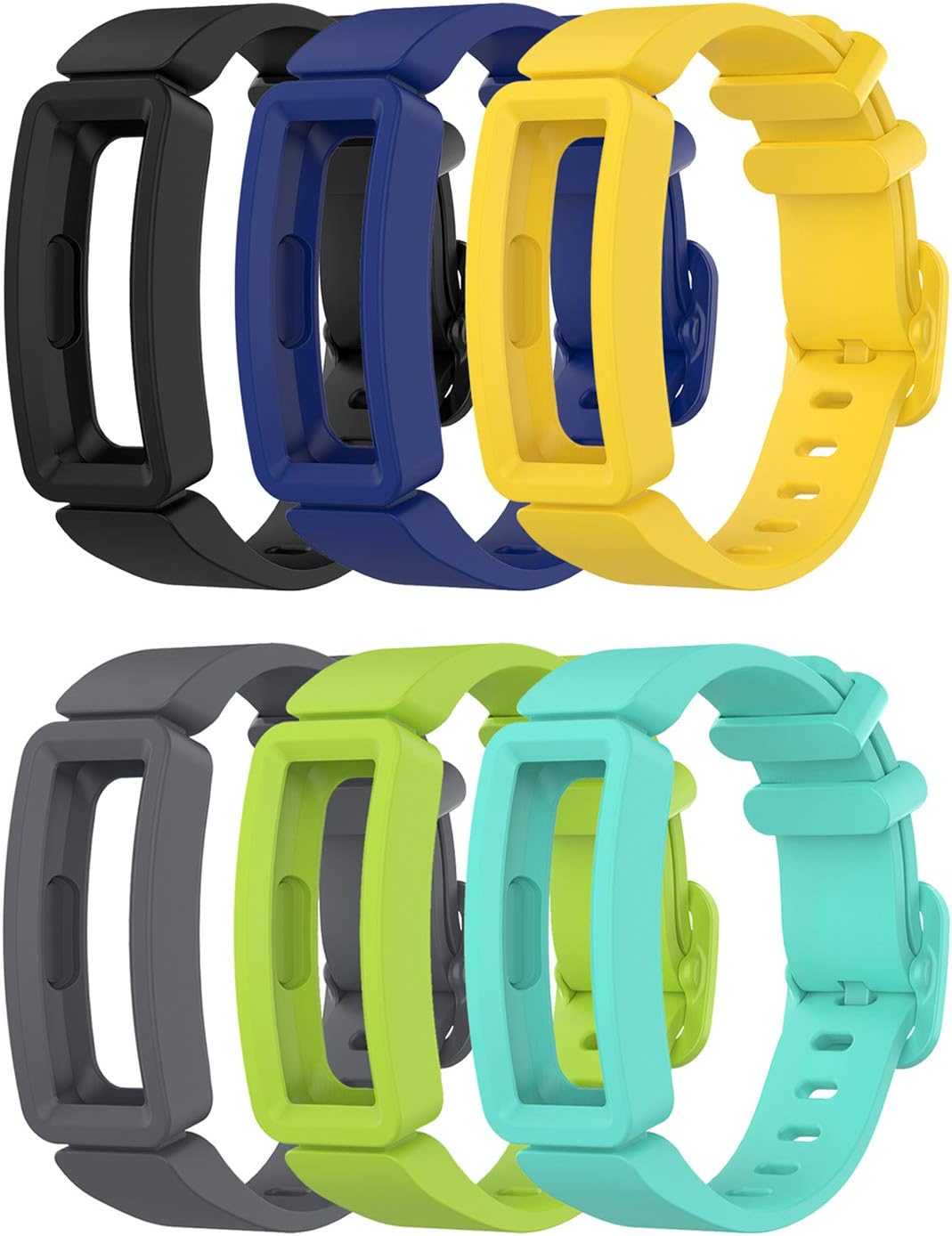 6-Pack Bands Compatible with Fitbit Ace 2 Replacement Strap for Kids (Black, Night Sky, Neon Yellow, Gray, Green, Teal)