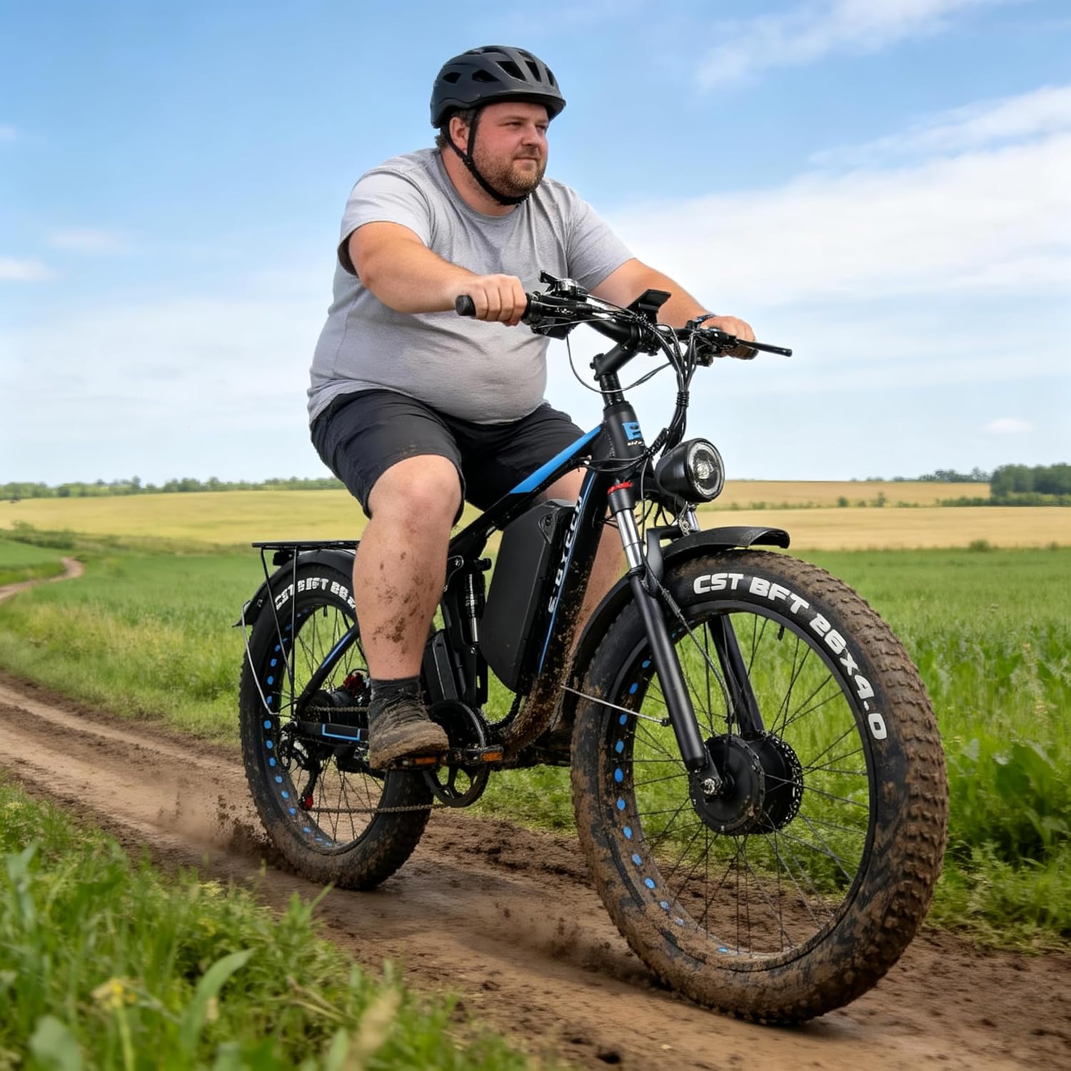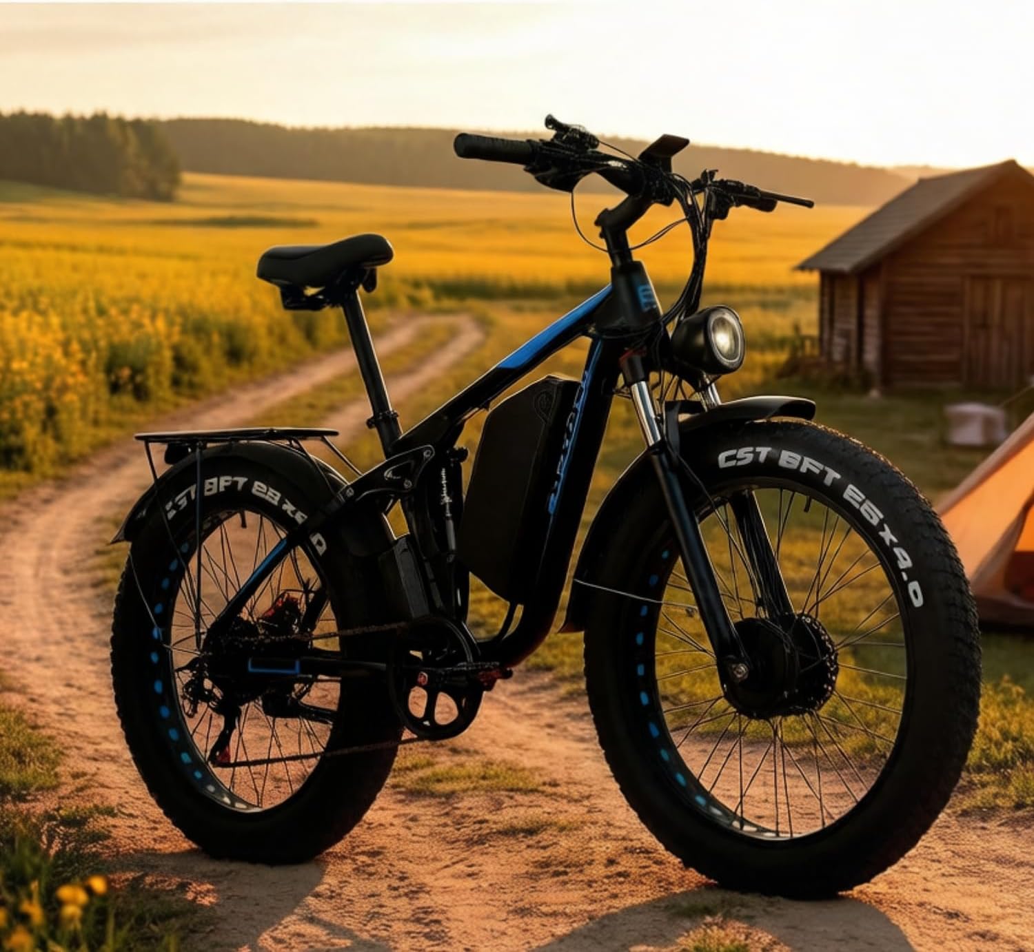 【Superior Full Suspension & All Terrain Fat Tire】EB7Pro fat tire electric bike’s features a 26-inch lockable hydraulic suspension and a sturdy aluminum hydraulic rear shocker, 26” x 4.0” fat tires, and an oversized comfortable seat, softening your ride and ensuring a smooth and stable ride even on rough roads or uneven terrain