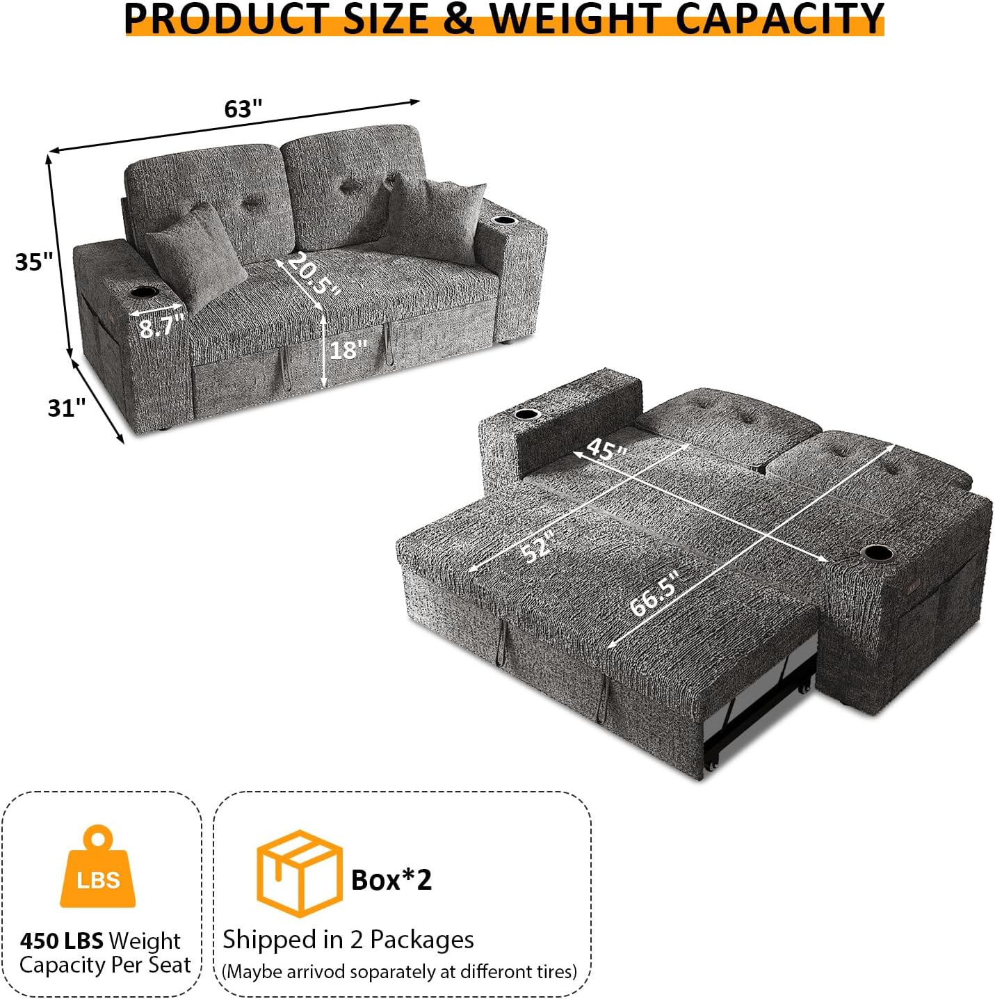 【2-Boxer Dispatched】Your sofa will arrive in 2 separate boxes (they may not show up at the same time). Please wait to assemble until all boxes arrive and verify contents using the packing list. Our 24/7 support team is here if questions arise!