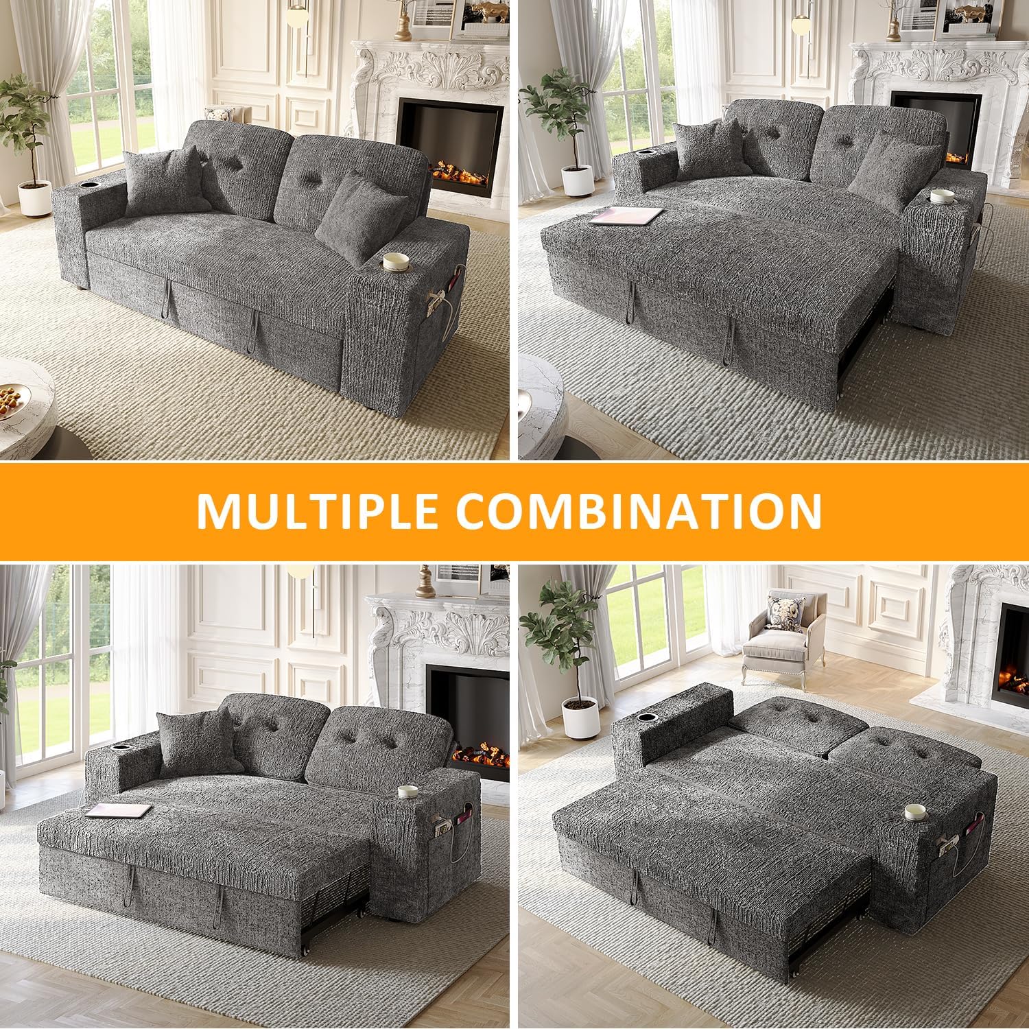 【Pull-Out Sleeper Sofa】Just one easy pull turns this into an extra-large, comfy bed. Perfect for overnight guests, weekend naps, or even a quick rest after work.