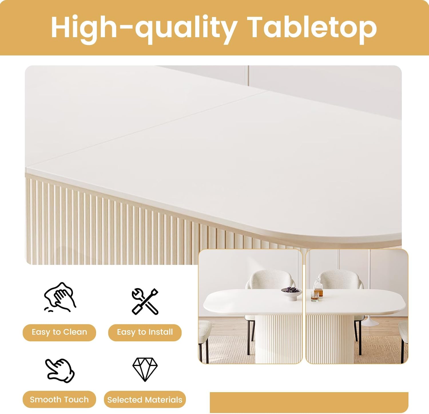 Rounded Corners for Safety: Safety is our top priority. Designed with rounded corners, this cream white kitchen table ensures a family-friendly dining experience by minimizing the risk of bumps and injuries, making it perfect for households with children or pets.