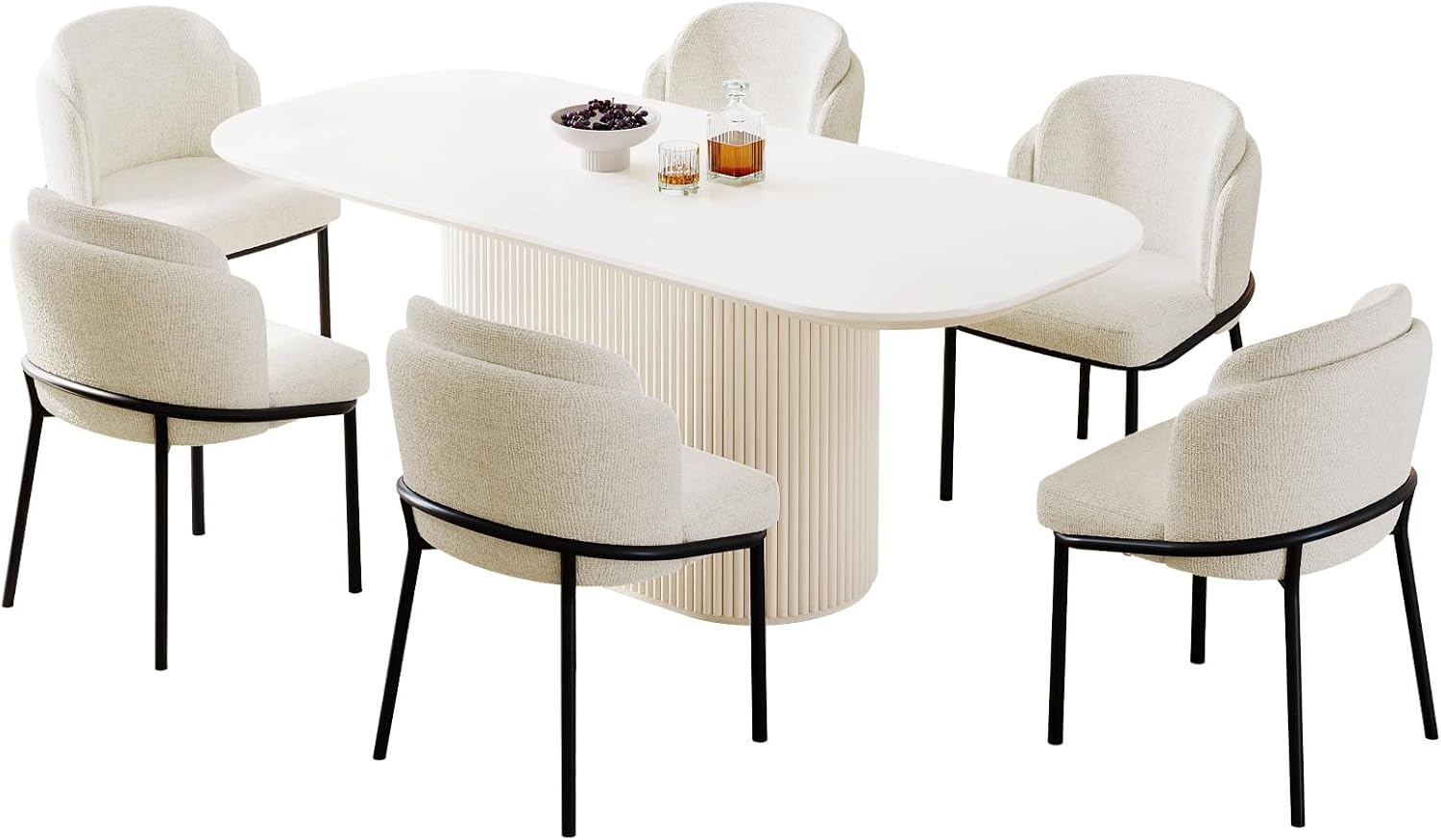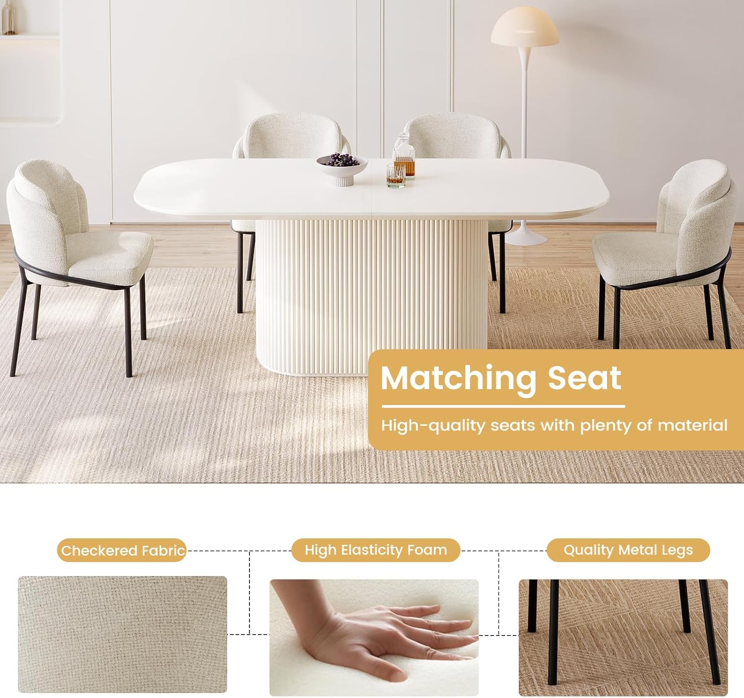 Sturdy & Unique Oval Base: Make a bold style statement with our cream white dining table set. The elongated oval-shaped legs, not only add a touch of uniqueness but also provide exceptional stability and load-bearing capacity for worry-free usage.