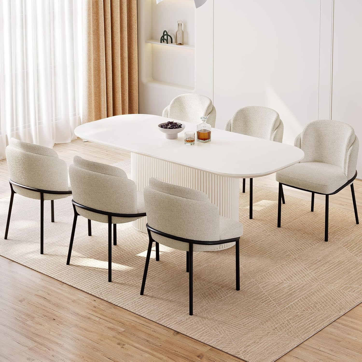 Ergonomic Chair Design: The set includes four ergonomically designed dining chairs that perfectly match the aesthetic of the oval table. Each chair provides exceptional comfort and support during extended meals, ensuring a relaxed and enjoyable dining experience for both guests and family members.