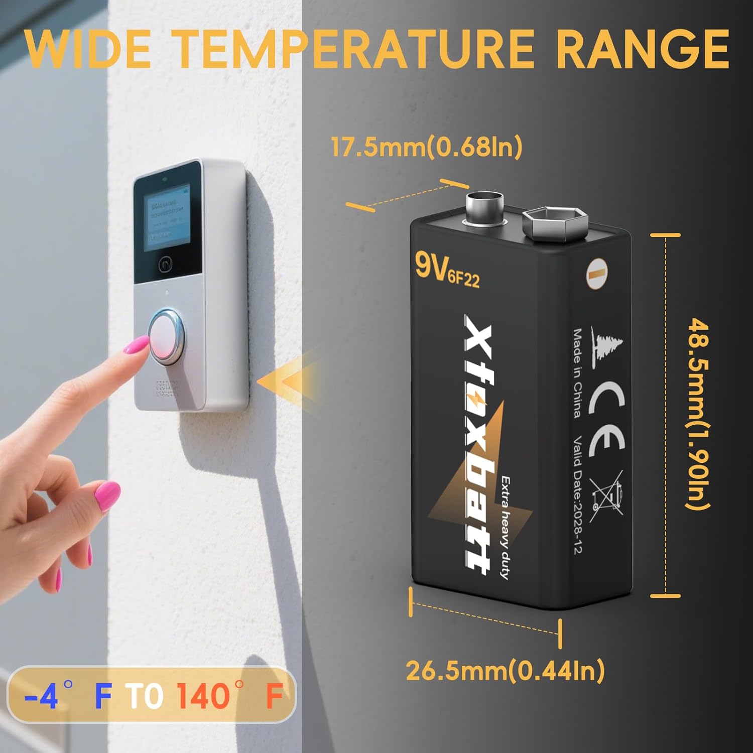 Long-lasting: Xfoxbatt 9v 6f22 batteries are fully charged before leaving factory. Battery life is long-lasting