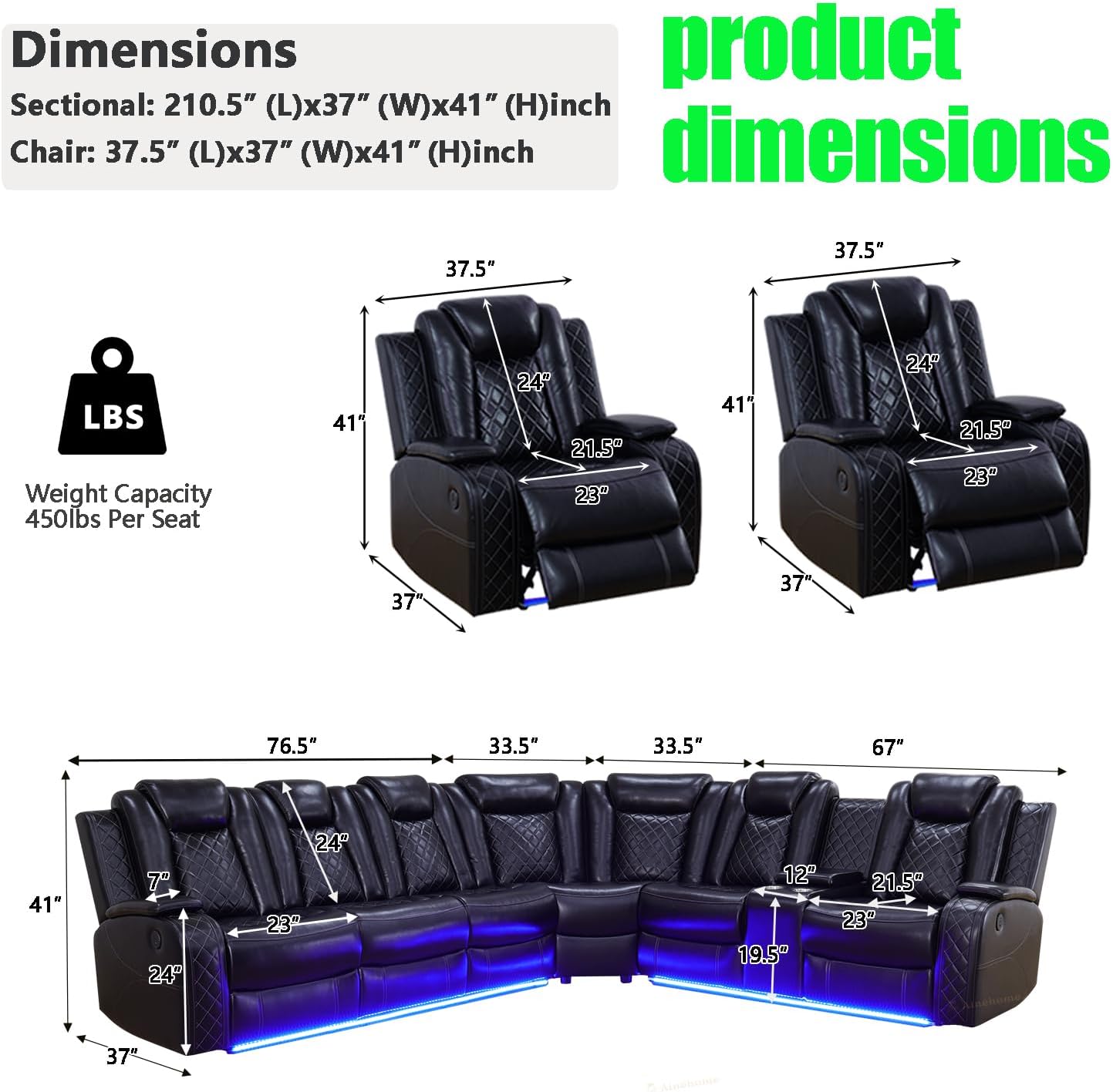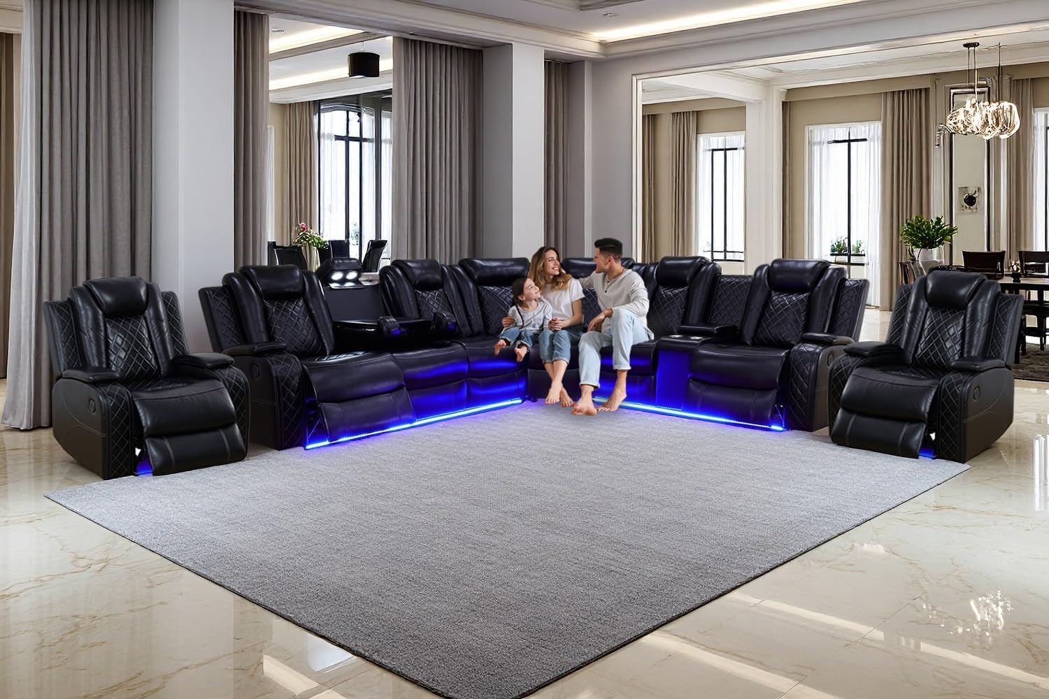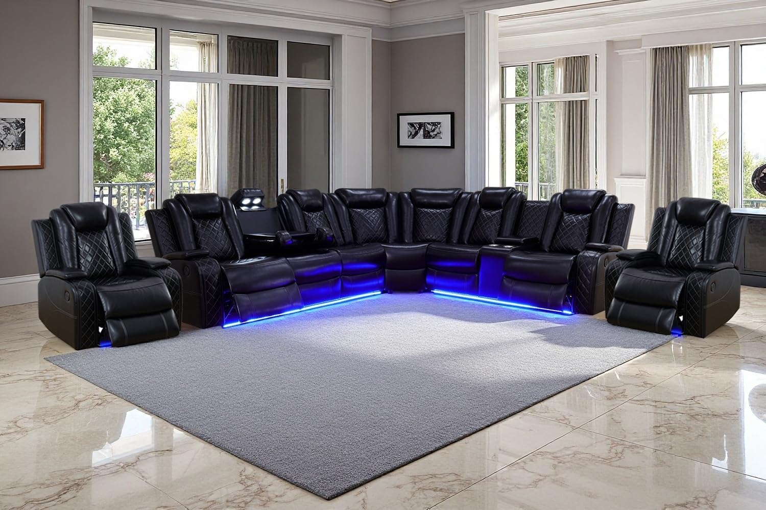 Quiet and efficient motor and environmental protection LED atmosphere light: Our sofa set drive motor adopts high-quality high-speed silent motor, quiet and smooth operation, no noise, no vibration; The atmosphere lamp adopts selected low-voltage weak current LED lamp beads, which has the characteristics of no heat, high safety, energy saving and environmental protection, bringing a modern and avant-garde atmosphere to your living space.