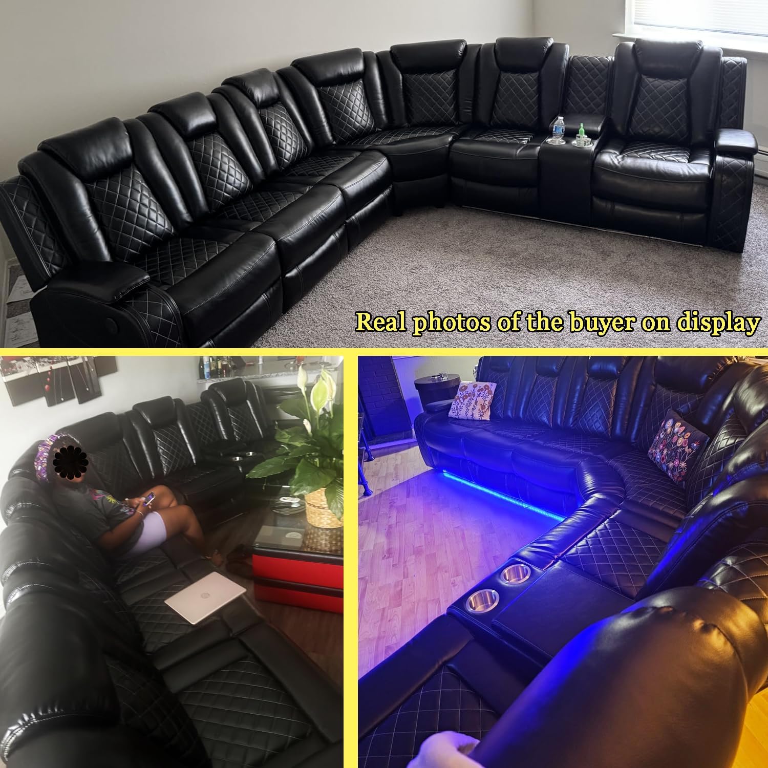 Premium material:Our power recliner sectional sofas are made of breathable leather and soft to the touch, providing a comfortable sitting and sleeping experience. In addition, the sofa is made of a sturdy solid wood frame and embedded spring system, which is not easy to deform and durable.