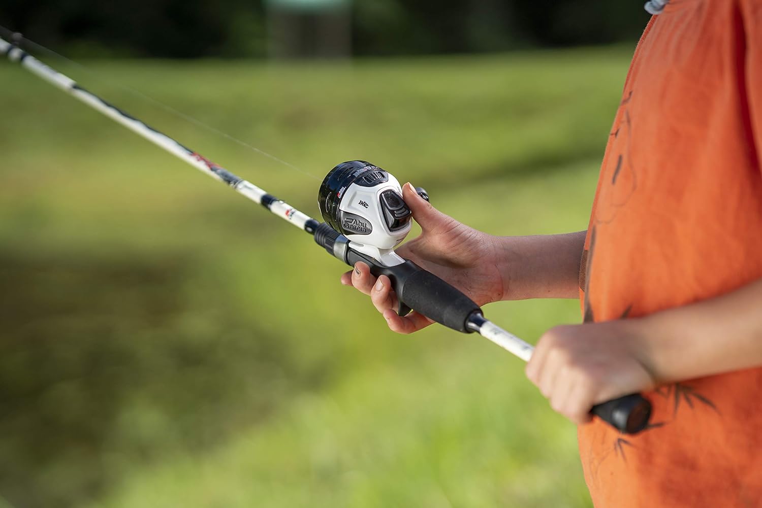 Abu Garcia 5’6″ Ike Dude Youth Fishing Rod and Reel Spincast Combo, 2-Piece Rod, Size 6 Reel, Right Handle Position,White