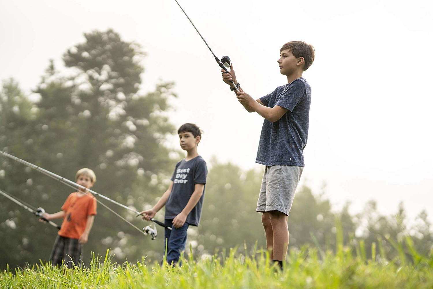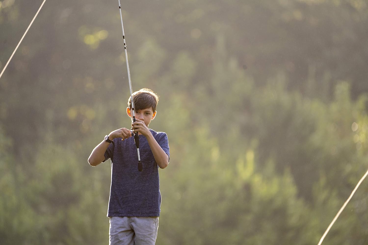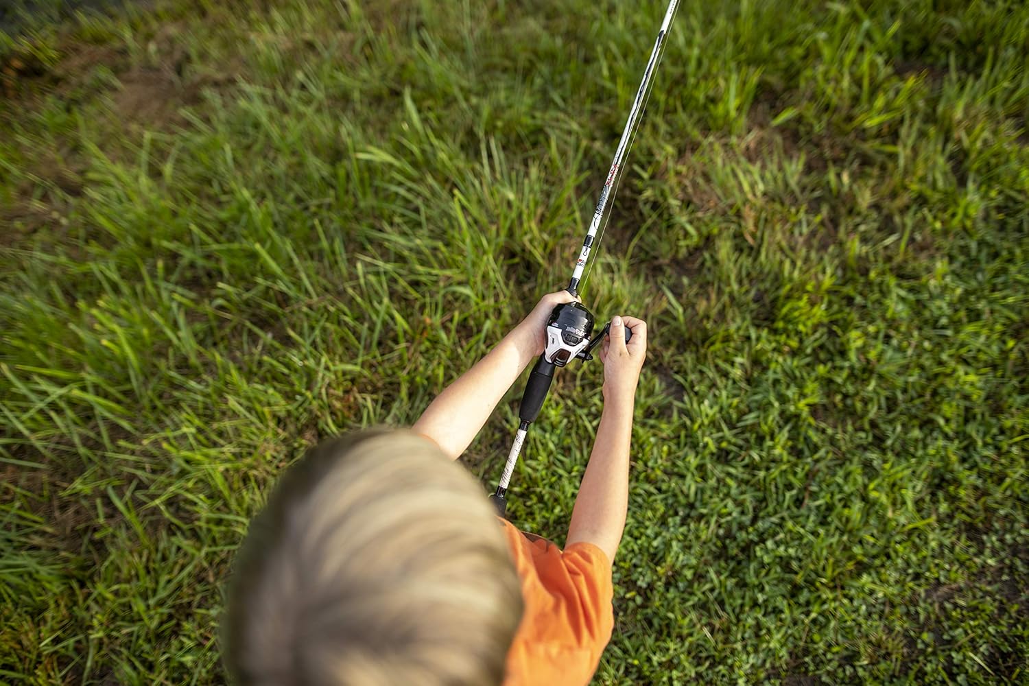 SUPERIOR CONSTRUCTION: Durable, graphite body and rotor with aluminum spool. 2 piece, composite kids fishing rod. Designed lightweight for children to easily hold with EVA type-Split handles made for Right/Left handed anglers.
