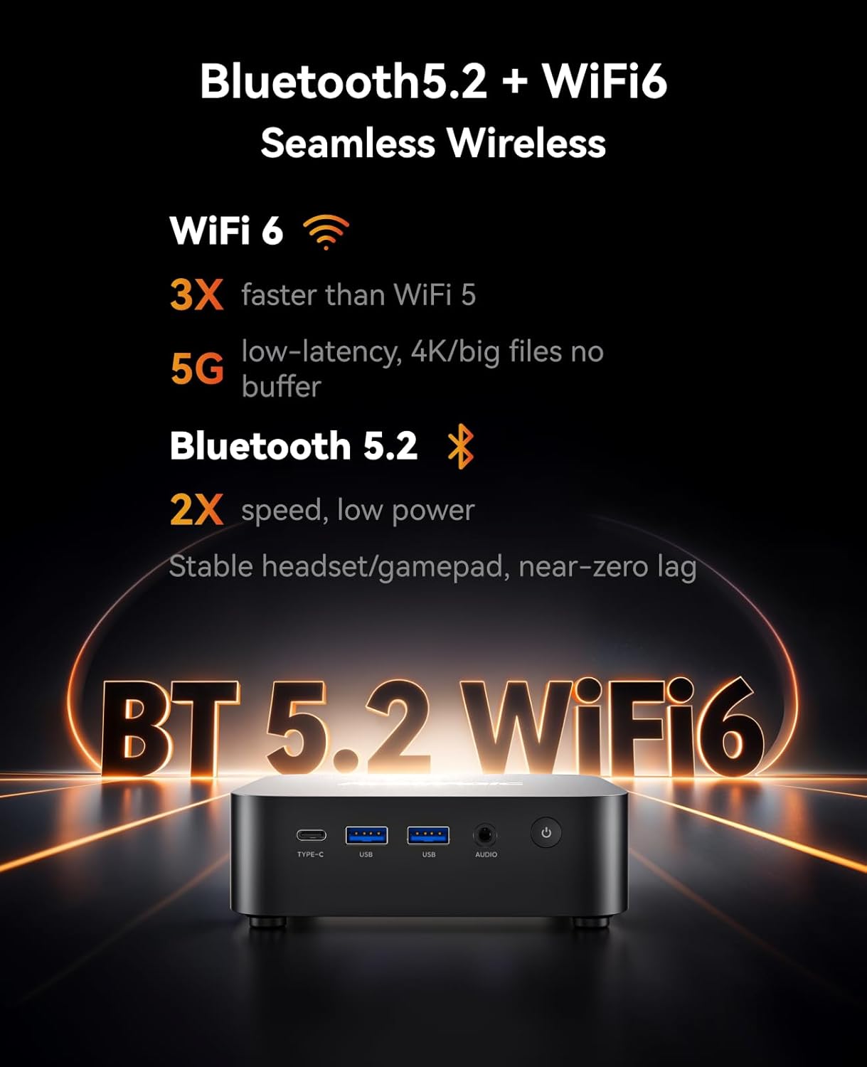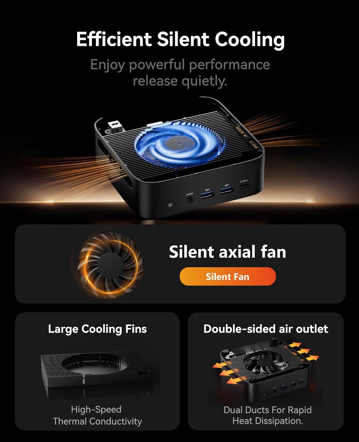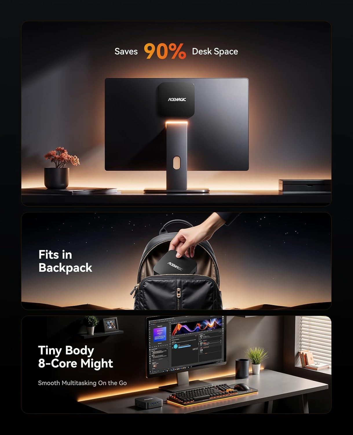 [4K TRIPLE DISPLAY OUTPUTS] Mini PC office supports triple display output with HDMI, DisplayPort and Type-C ports. The GPU adopts Radeon Graphics (8 GPU cores), the clock speed is 2000MHz, supports ultra-realistic 4K visual effects, which can provide incredible clarity and maximum work efficiency