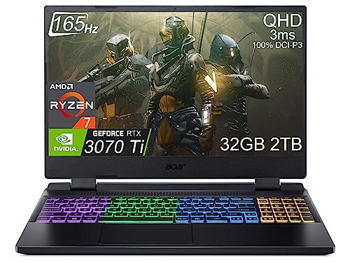 Acer Nitro 5 Gaming Laptop (15.6″ QHD 165Hz, AMD 8-Core Ryzen 7 6800H (Beat i7-12650H), NVIDIA GeForce RTX 3070 Ti 8GB, 32GB DDR5 RAM, 2TB PCle SSD) RGB Backlit, Webcam, WiFi 6E, Win 11 Home, Black