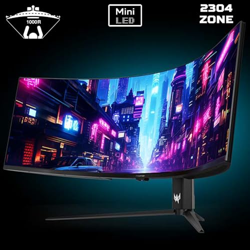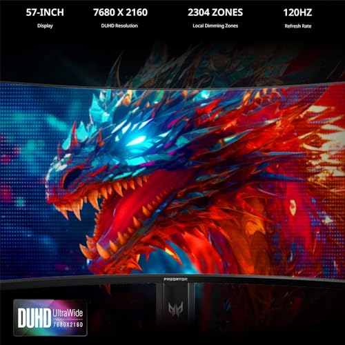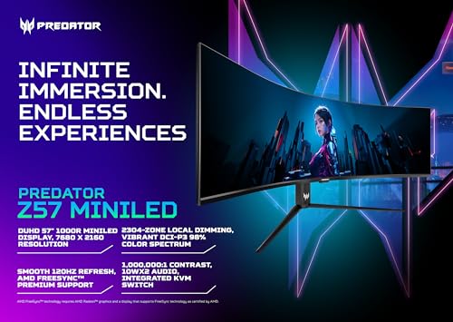 acer Predator Z57 | 57″ DUHD 7680 x 2160 Mini LED 1000R Curved Gaming Monitor | AMD FreeSync Premium | 120Hz | 1ms | VESA DisplayHDR 1000| DCI-P3 98% | KVM Switch | USB Type-C, DP 1.4 & 2 x HDMI 2.1