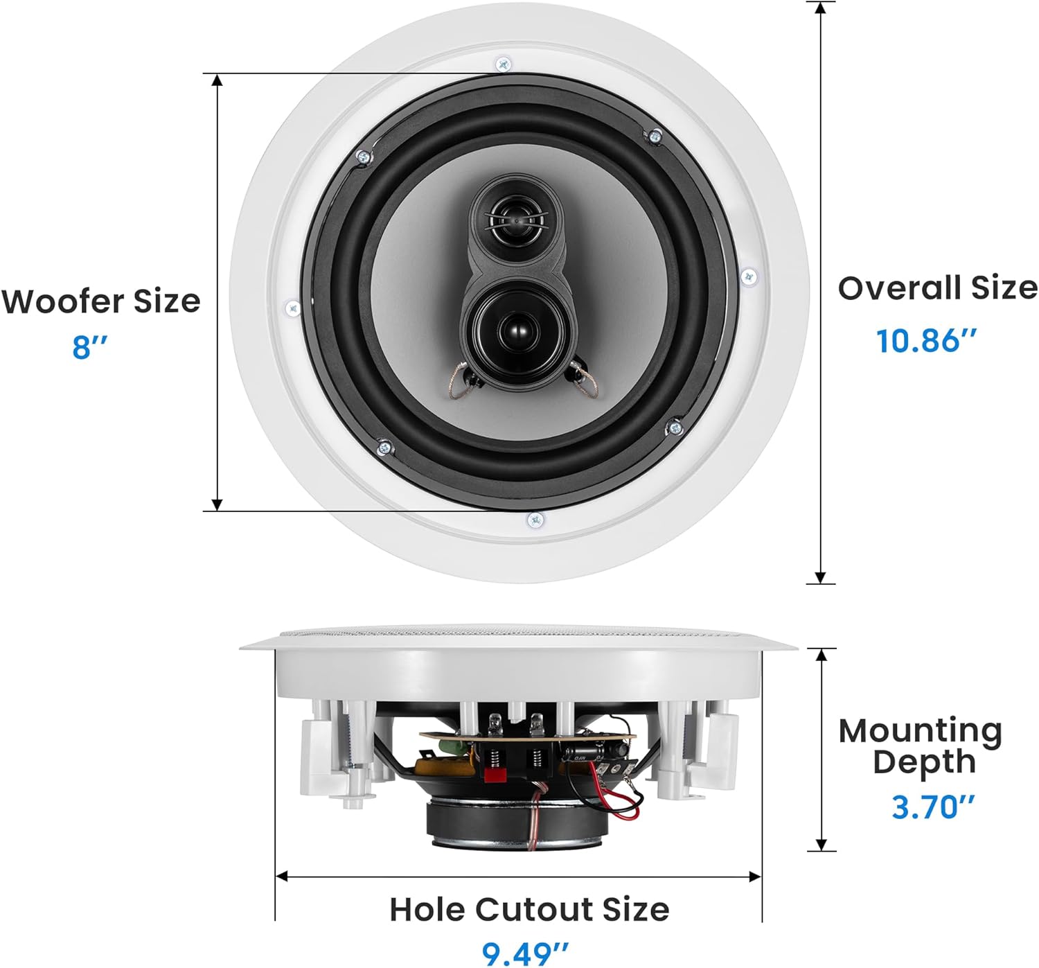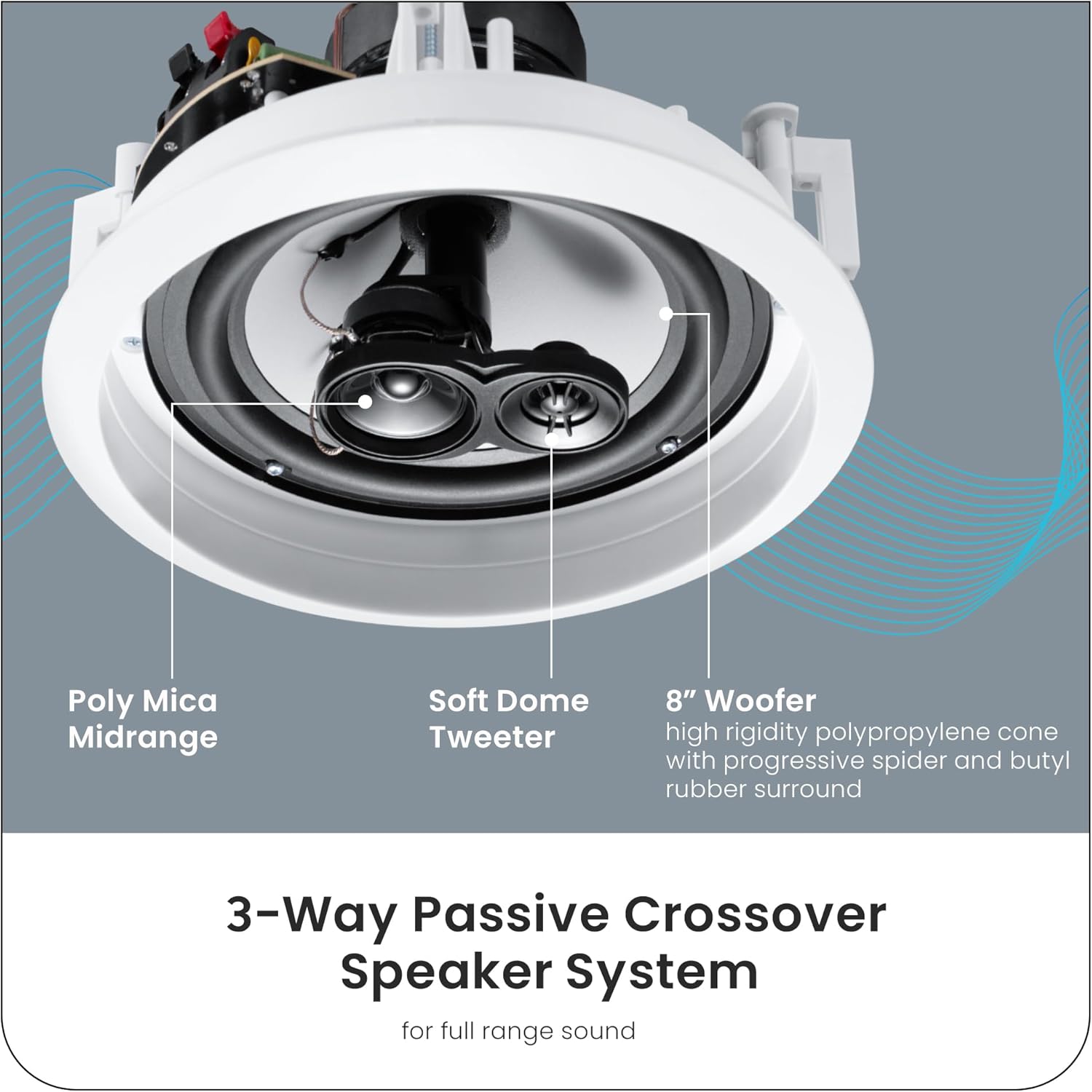 Specification: Acoustic Audio by Goldwood CS-IC83 8” 3-Way In Ceiling Home Theater Speaker System (White, 5 Speakers)