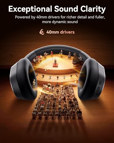 Bluetooth 6.0 & AUX Wired Mode: Advanced Bluetooth 6.0 over ear headphones deliver faster pairing, stronger signal stability, and ultra-low latency as low as 35ms, providing up to 2× faster data transmission than regular headphones bluetooth across phones, tablets, and computers. Prefer wired headphones? Instantly switch to the included 3.5mm AUX cable for true lossless sound, ideal for gaming, studio work, or airplane entertainment. Seamlessly move between wireless freedom and wired precision.