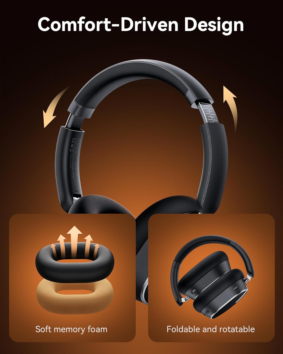 Hybrid Active Noise Cancelling: Instantly block up to 95% of ambient noise with a 4-layer hybrid ANC system. Noise cancelling headphones paired with an ultra-fast ANC chip reduce up to 45dB in 0.02s, eliminating distractions the moment you hit ANC. Switch to Transparency Mode to stay aware of your surroundings for hearing announcements, traffic, or colleagues while maintaining crystal-clear audio for music, calls, or games, making it perfect for commuting, flights, offices, or focused sessions.