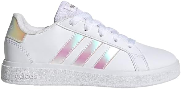 These Adidas sneakers check all the boxes for both parents and kids. My toddler loves them, and I love that they’re supportive enough for active play.Pros:✅ Comfortable fit: Cushioned insole keeps little feet happy during play.✅ Supportive design: Stiffer outer sole gives good structure for running and tennis.✅ Kid-friendly features: Velcro straps make them easy for toddlers to get on and off without help.✅ Stylish details: The iridescent stripes and heel accent add a fun pop of color.✅ Trusted brand: Same Adidas quality you’d expect in adult shoes.Cons:❌ White color shows dirt quickly — they’ll need frequent wipe-downs to stay looking fresh.Overall:A fantastic choice for active toddlers who need both comfort and support. The design is cute enough to work for everyday outfits, and the practical Velcro straps make life easier for parents. Would absolutely buy again.