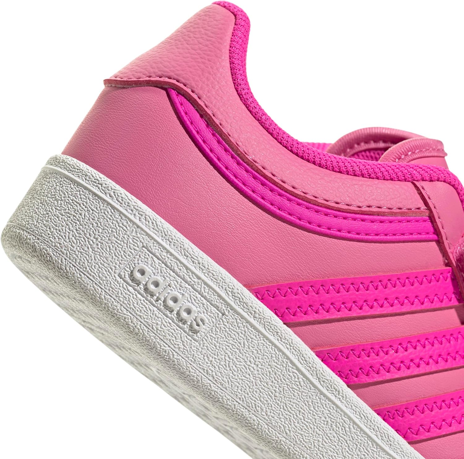 Inspired by classic footwear made for the hardwood, these versatile shoes from adidas Basketball are as comfortable as they are timeless. The low-profile silhouette, synthetic leather upper and suede toe cap pair well with anything in your wardrobe, from track pants to shorts to jeans. Hook-and-loop straps make getting in and out of them a breeze. The rubber cupsole takes its design cues from heritage B-ball styles.