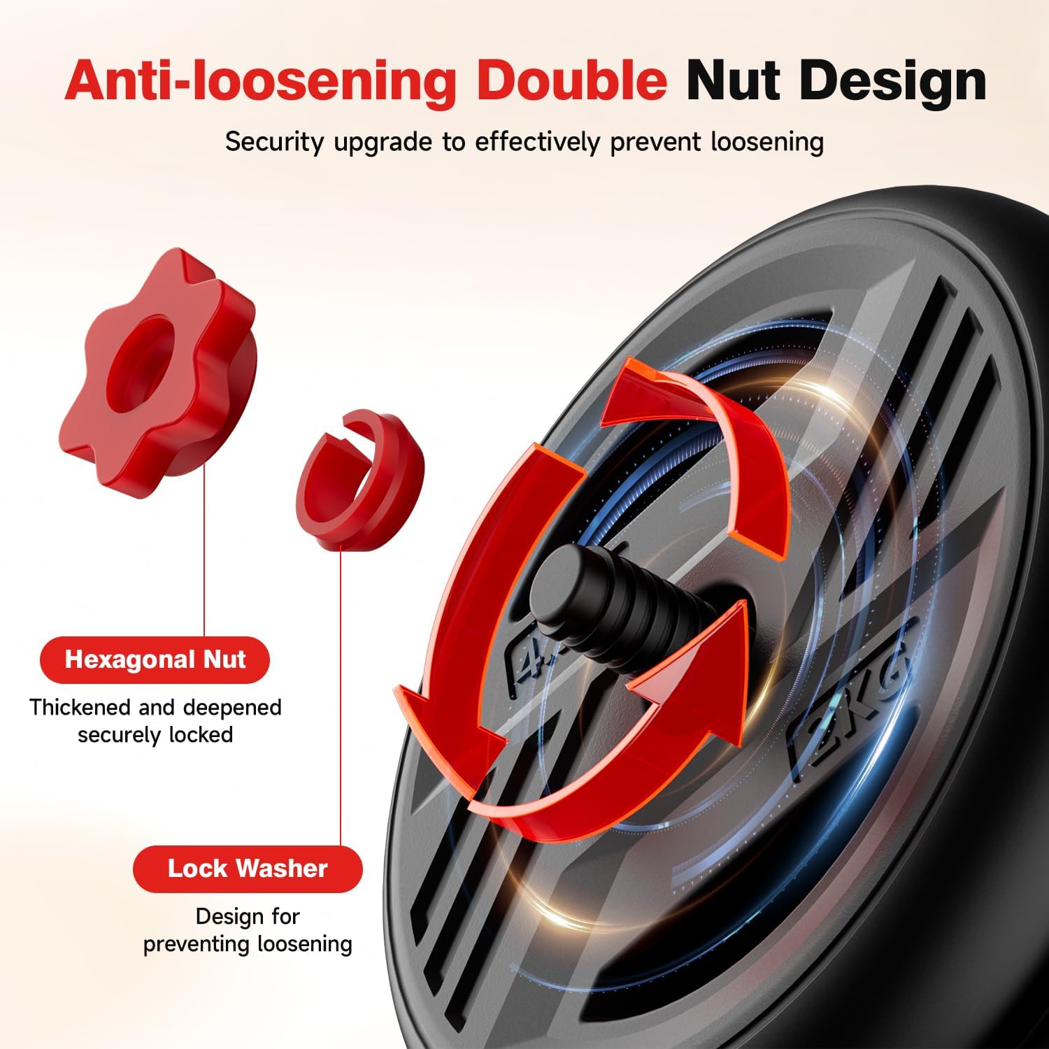 Upgraded Double-Layer Nut for Enhanced Safety: Compared to ordinary multi-purpose dumbbells, the upgraded double-layer nut of these adjustable dumbbells from the adjustable dumbbell set significantly enhances safety. This thoughtful design of the dumbbell set effectively keeps the weight plates secure and prevents loosening or shaking, ensuring your safety during workouts with the adjustable dumbbell set.