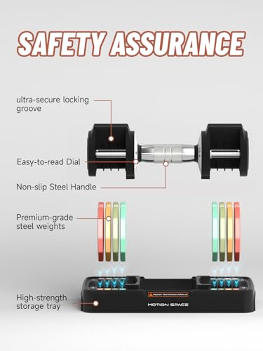 SAFETY DESIGN: With its innovative count weight plate design, it easily adjusts the weight by holding the handle and turning the pointer to the desired number. Our latest design includes 8 locking mechanisms, providing stability and ensuring safety during workouts