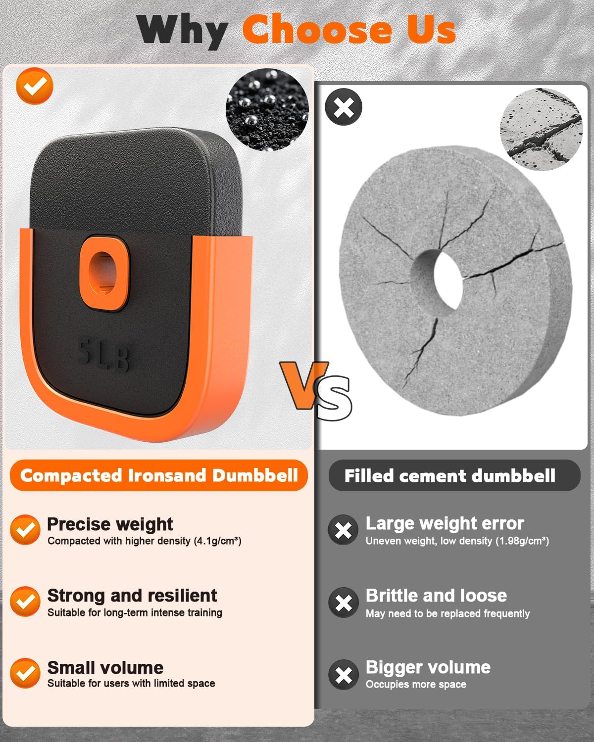 High-Quality Material: The dumbbell plates are made from a high-density iron sand mixture, ensuring precise weight distribution and eliminating the risk of sand leakage
