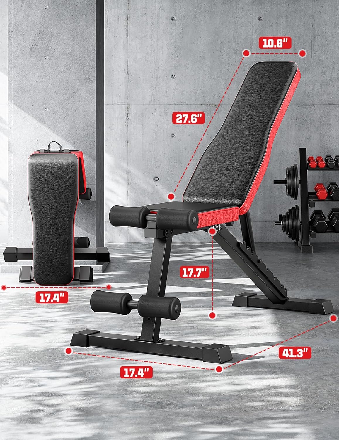 🔴【660LBS Heavy-Duty Stability】Built with commercial-grade steel and a triangular support structure, this weight bench delivers rock-solid stability for intense workouts. Rigorously tested to support up to 660LBS, it ensures safe lifting for bench presses, dumbbell exercises, and full-body training. Non-slip rubber feet keep it steady on any floor, while the reinforced frame prevents wobbling—no more shaky workouts!