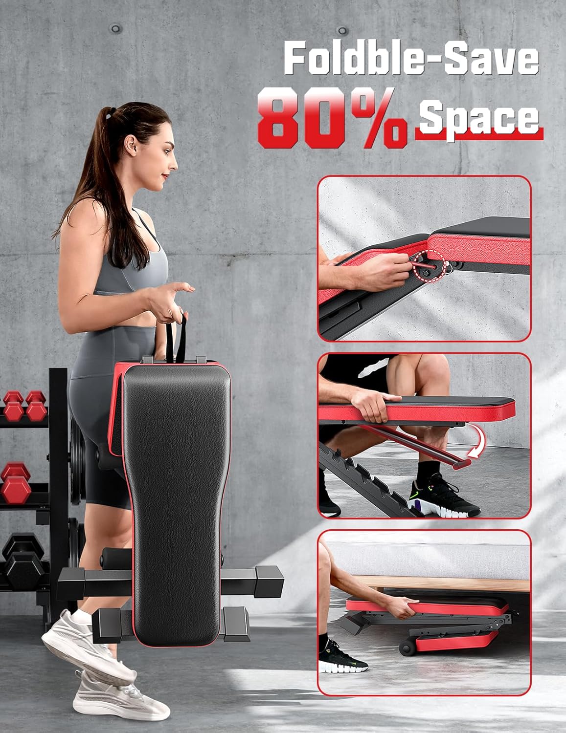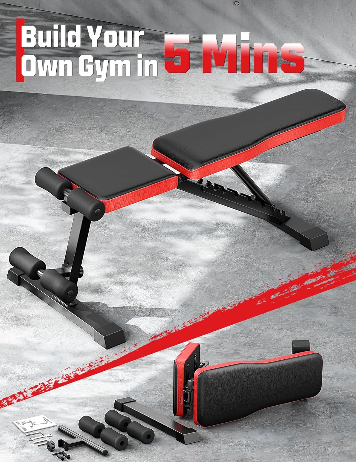 🔴【9-Position Adjustable】Customize your training with 9 backrest positions (incline, flat, and decline) to target chest, back, shoulders, abs, and legs. The quick-release lever lets you switch angles in seconds—no tools needed! Perfect for bench presses, sit-ups, shoulder presses, and more, this adjustable bench replaces multiple gym