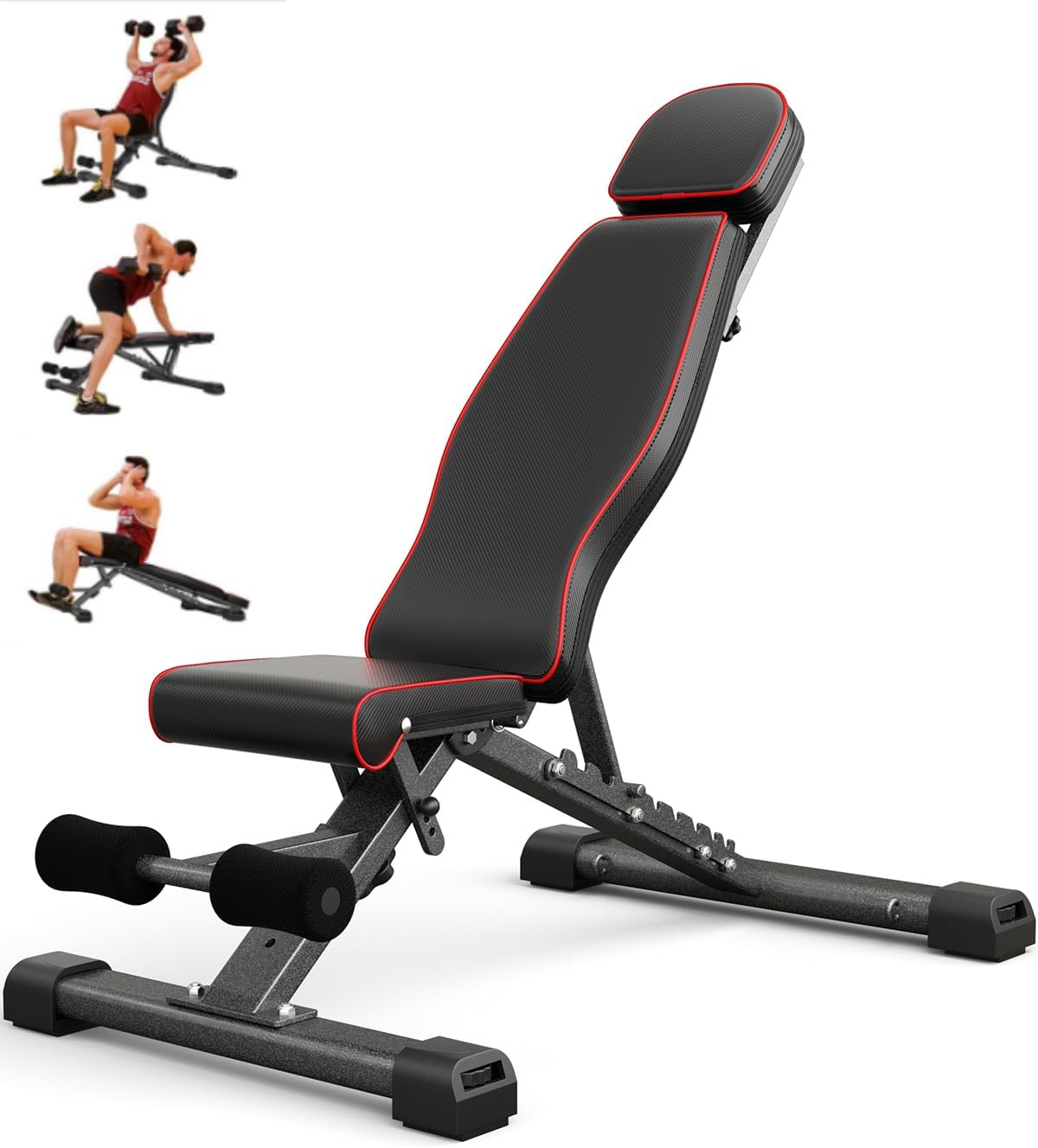 High Quality & Stable: Soft foam padding surrounded by leather fully protect your body when exercise. Adjustable non-slip feet cover could protect floor from scratch,and keep weight bench stable during your training.