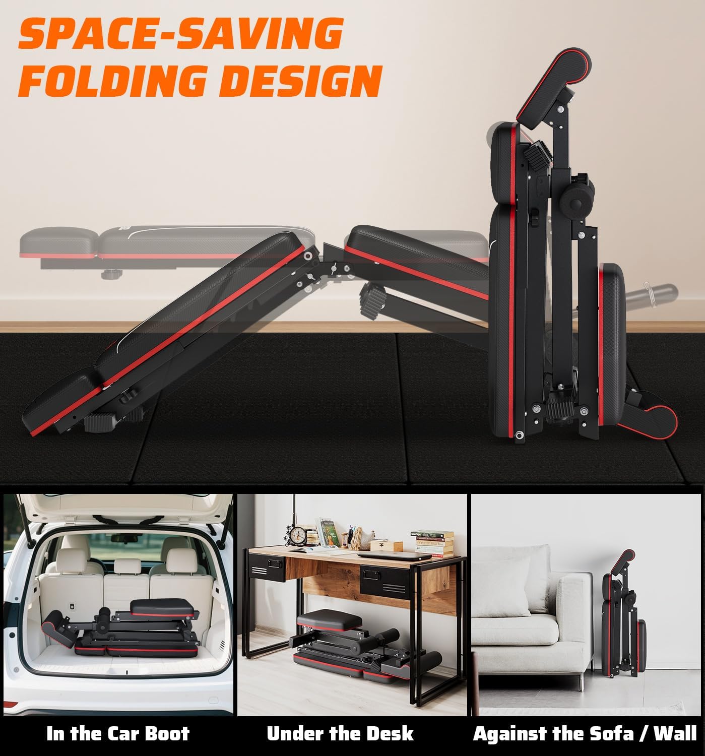 【Foldable Design-Save Space in Small Homes】 Short on room? Our ingenious foldable bench press design is your answer. When your session is over, the bench folds flat almost instantly for compact, vertical storage. It’s the perfect, space-efficient workout bench for apartments, garages, or any home gym, ensuring your fitness journey isn’t limited by your square footage.