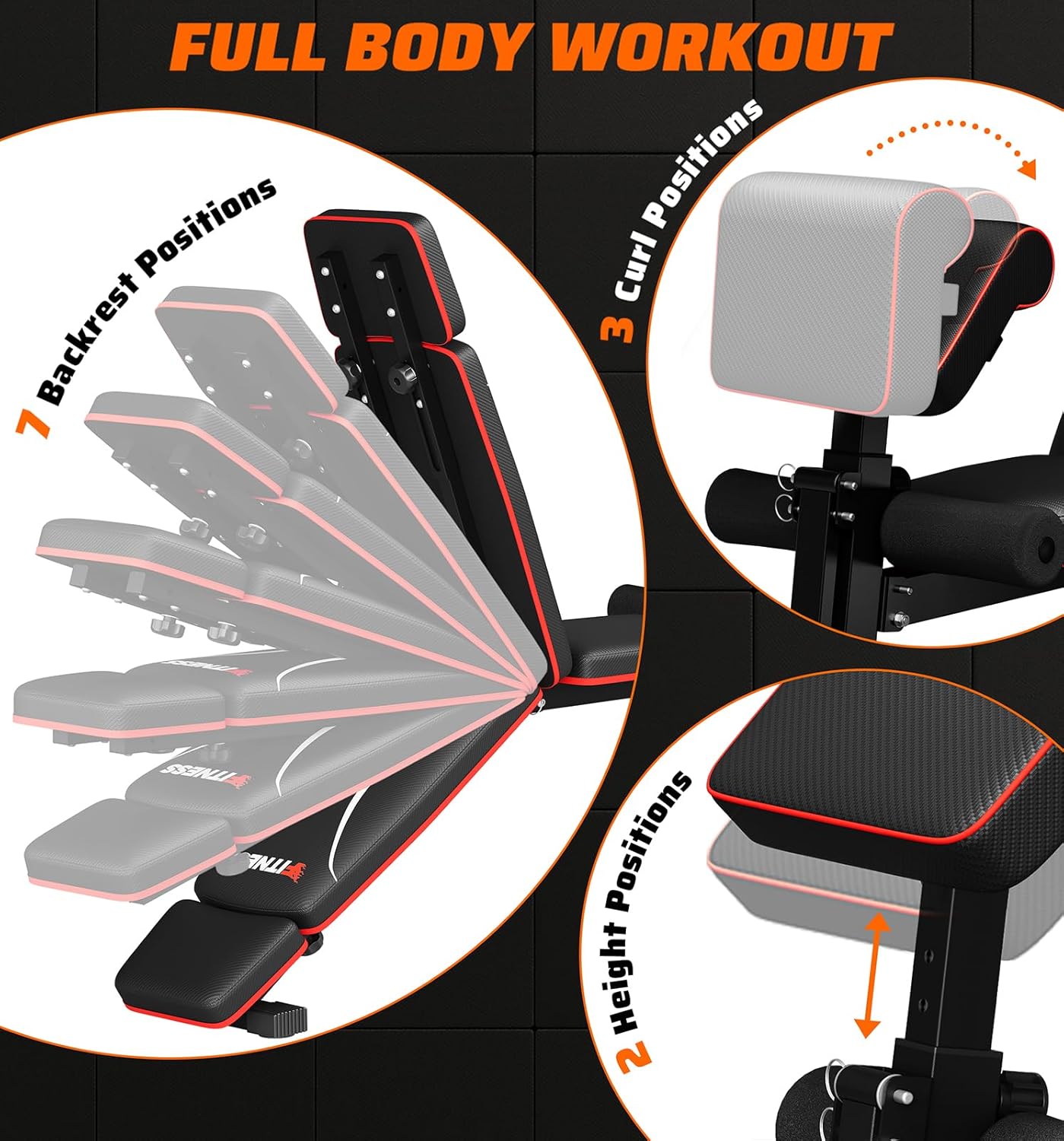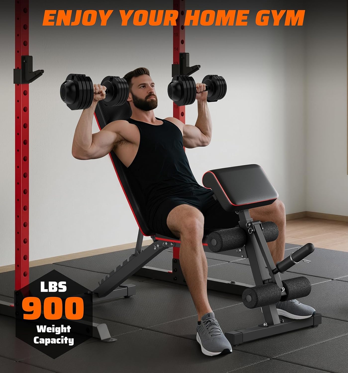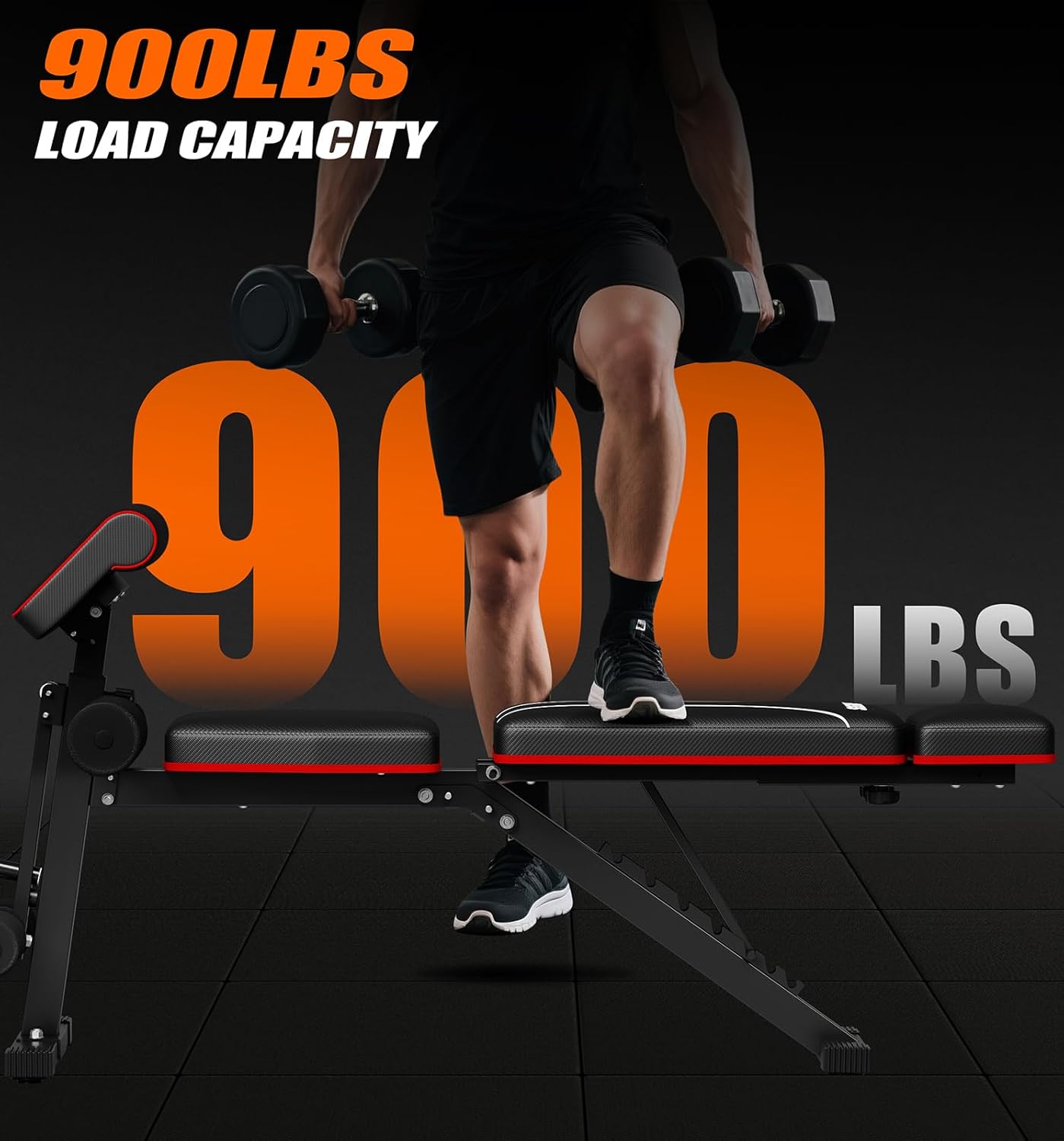 Adjustable Weight Bench & Workout Bench & Leg Extension for Home Gym, Foldable Bench Press for Full Body Workout with Leg Developer & Preacher Pad, 900Lbs Capacity & Space-Saving Design