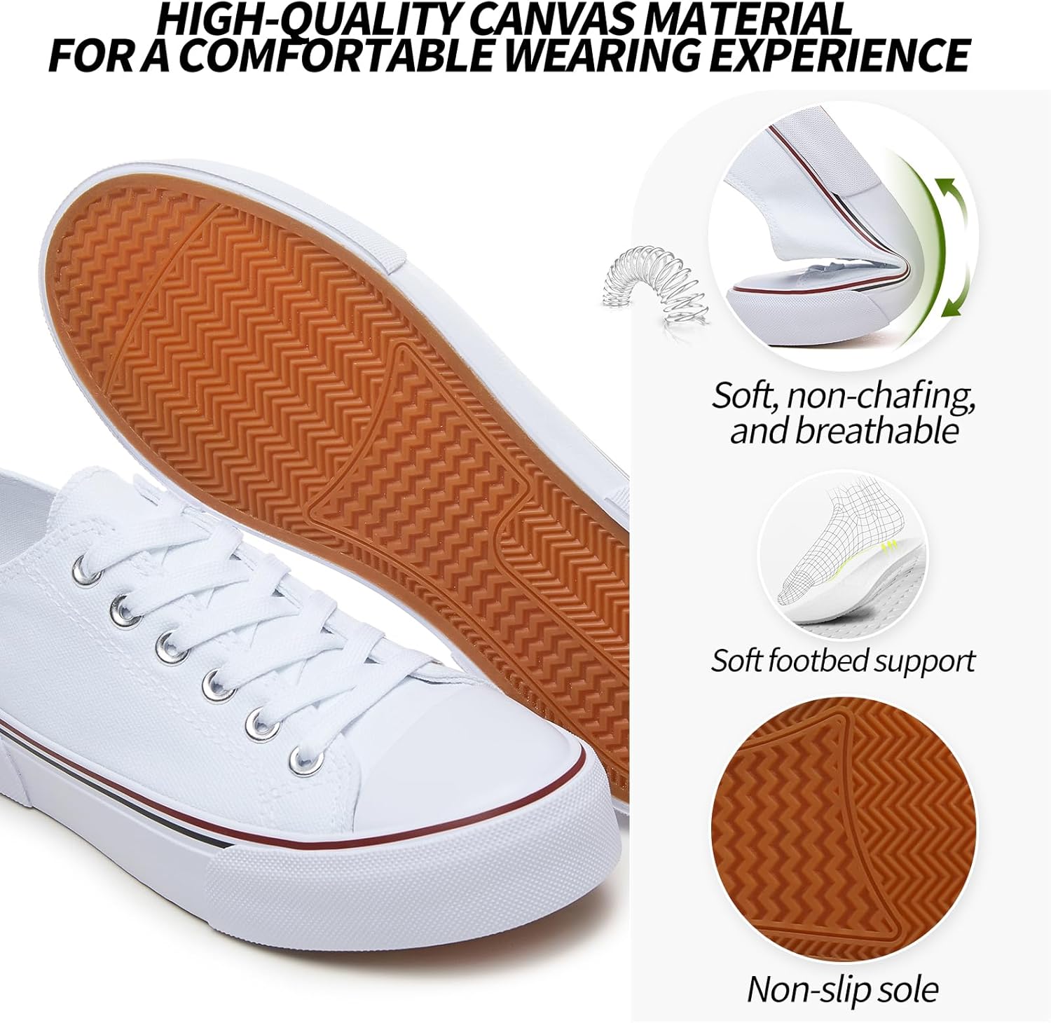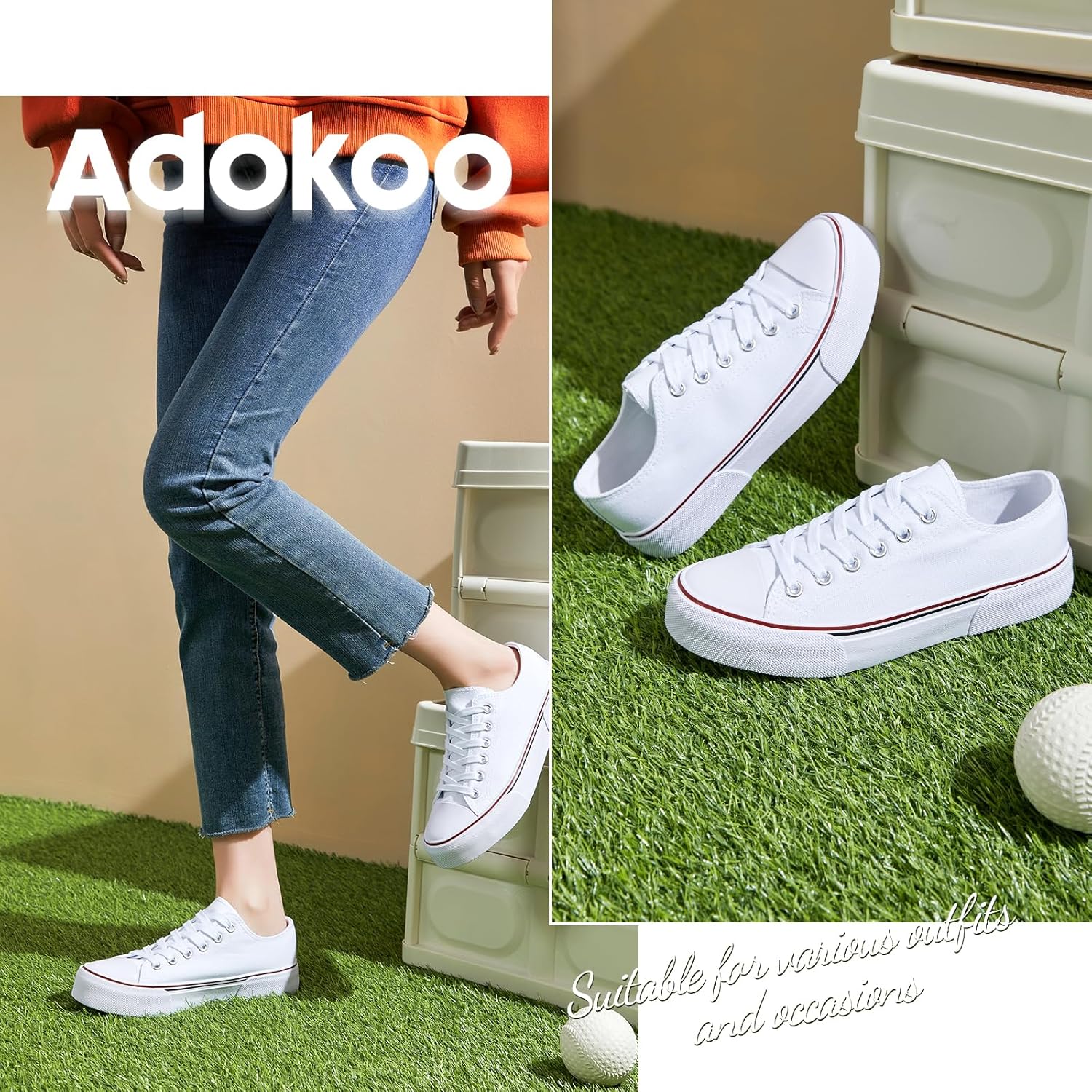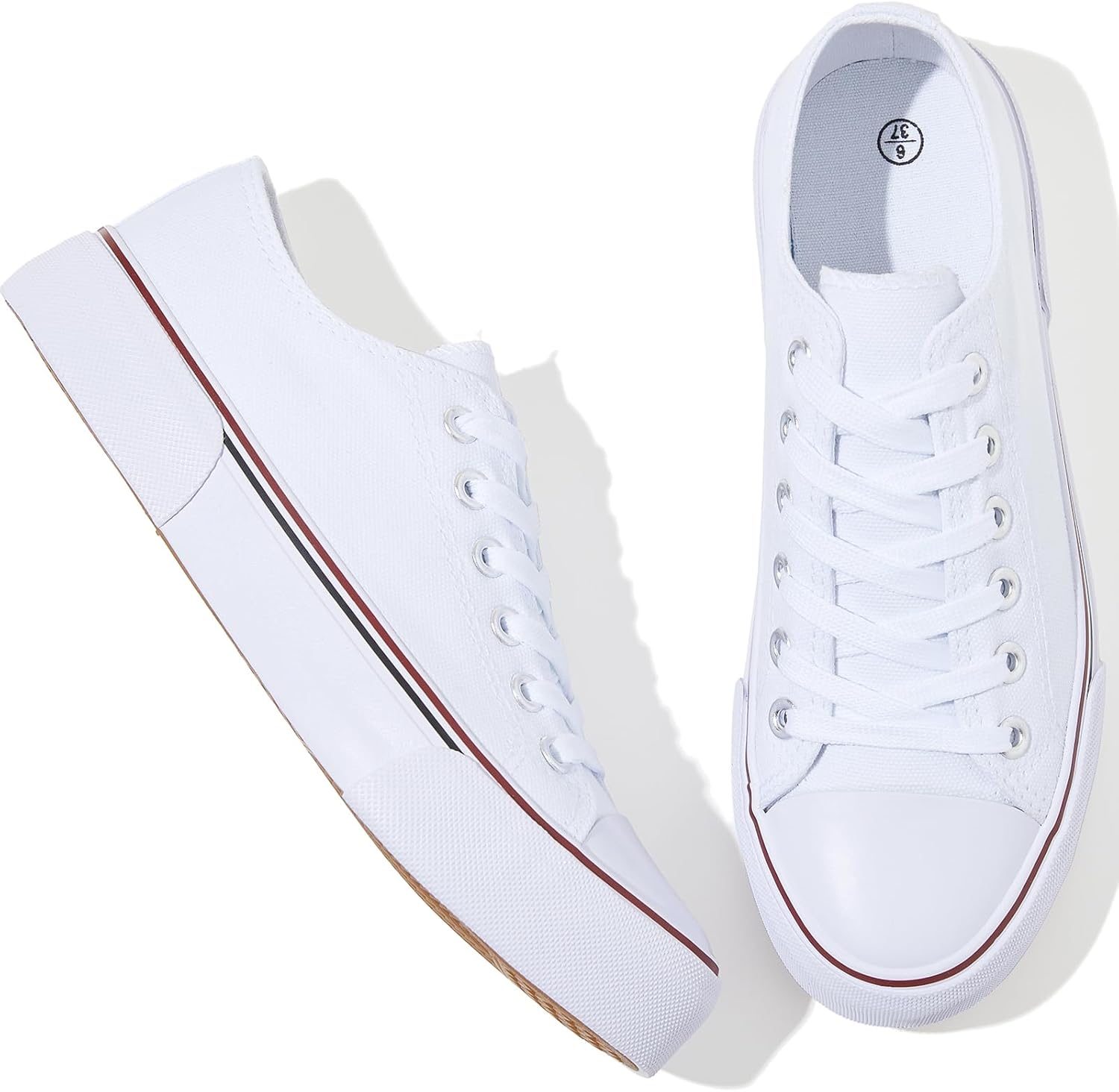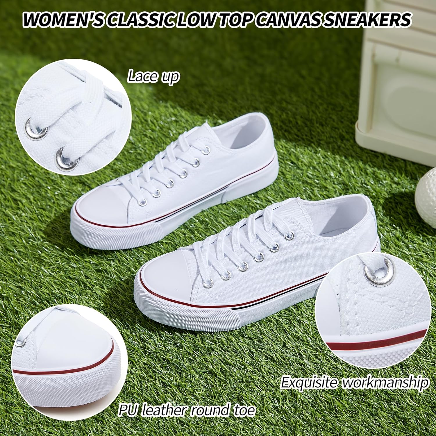 Adokoo Canvas Tennis Shoes for Women Low Top Casual White Black Sneakers for Women Lace Up Fashion Comfortable Walking Shoes