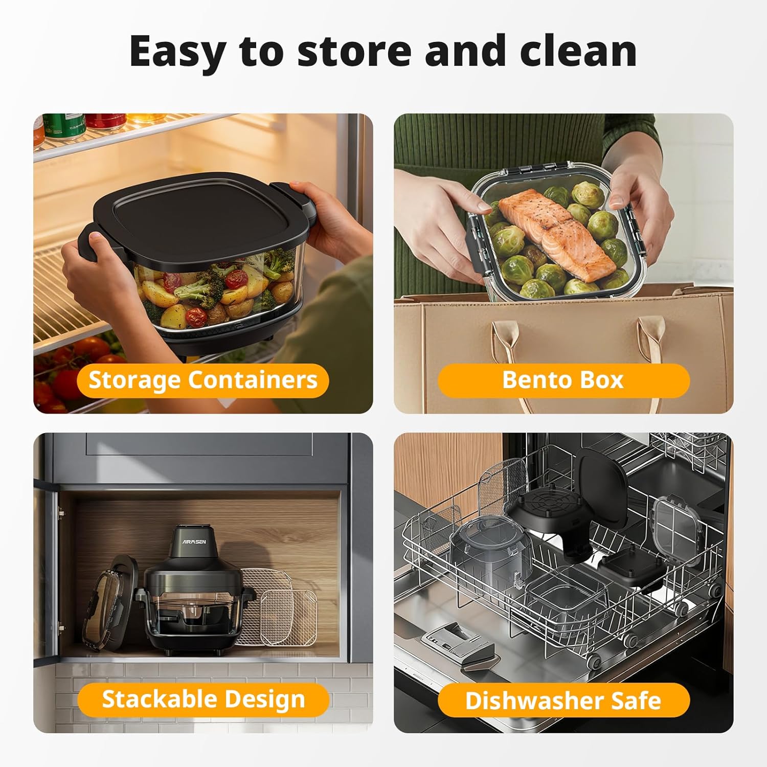 Crystal Clear View: Stop guessing! The 360° transparent glass lets you watch your food turn golden-brown without ever opening the lid. Achieve perfect results every time with the 1500W turbo heating system that cooks evenly using 95% less oil than traditional frying for guilt-free deliciousness.