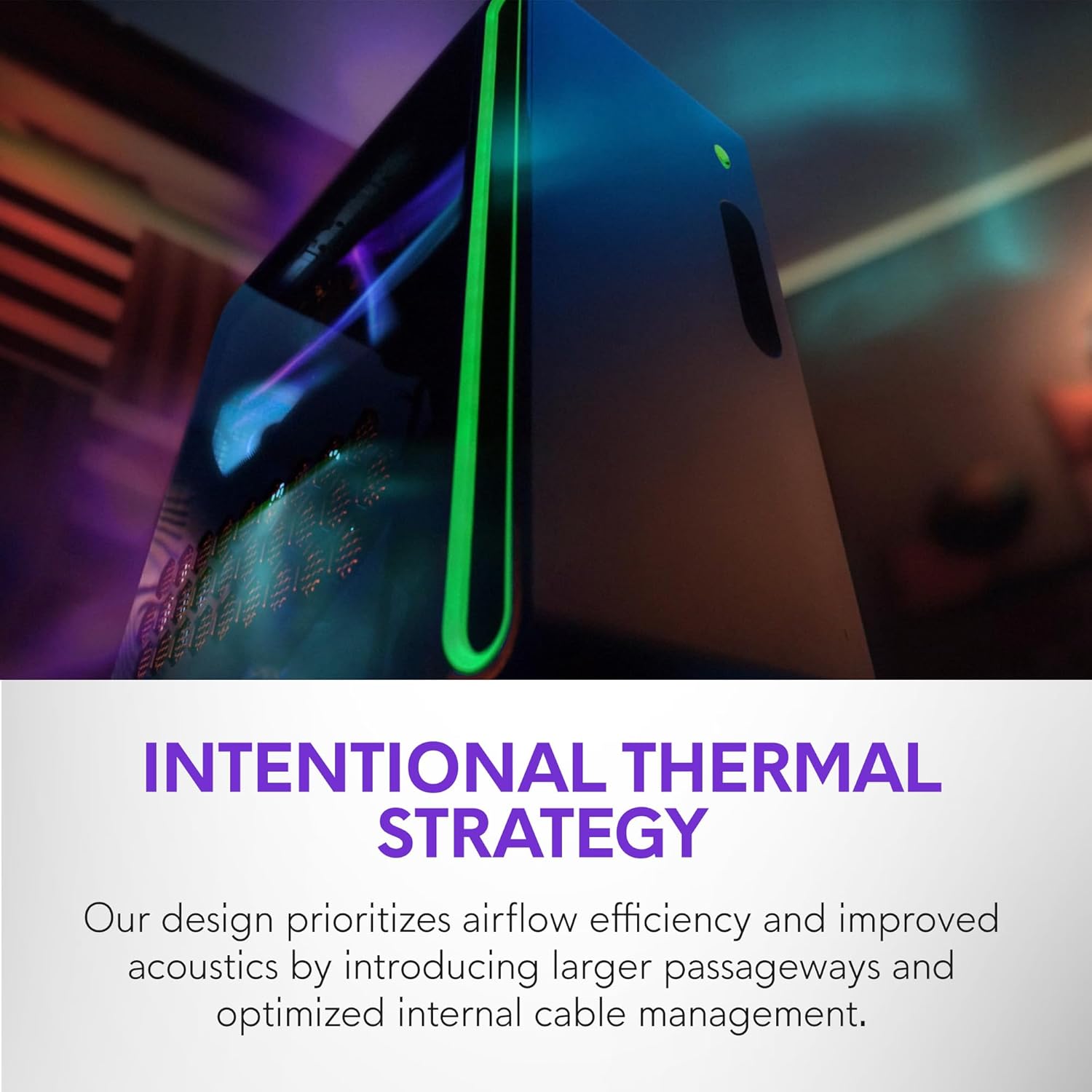 240mm heat exchanger: The 240mm heat exchanger, available on the optional CPU liquid cooling, heightens thermal resistance, ensuring temperatures stay consistently low during longer gaming sessions.