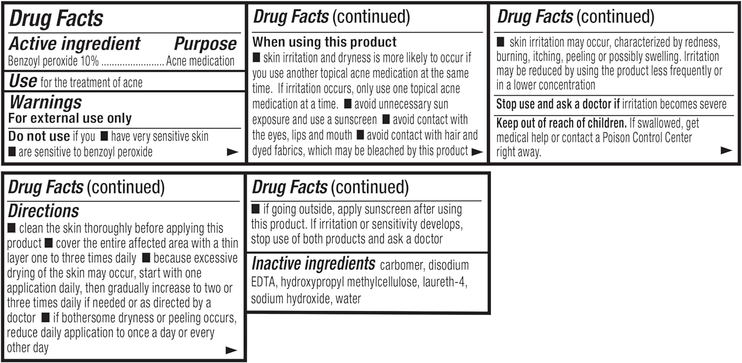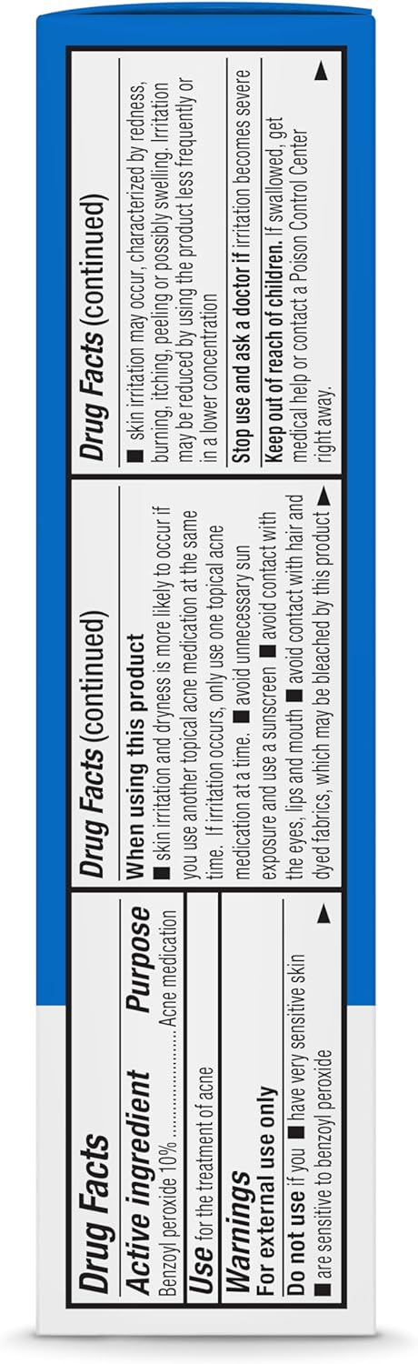 Amazon Basics 10% Benzoyl Peroxide Acne Medication, Maximum Strength, 1 Fluid Ounce Face Gel