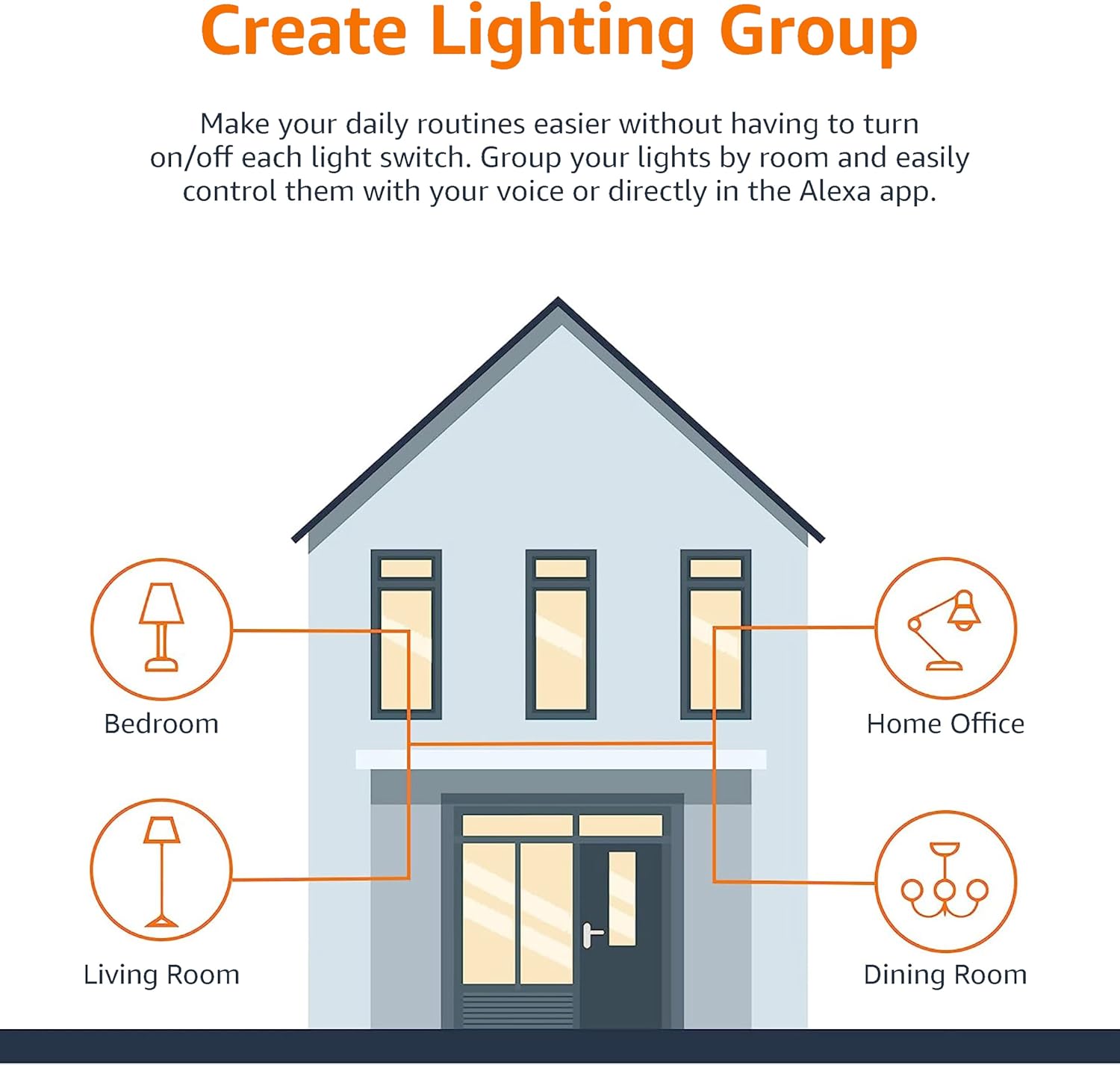 CONTROL FROM ANYWHERE: Control your smart lights with Alexa app even when you are not at home e.g. from your car, office, gym. Feel secure by making your house look occupied even when you are away by creating an Alexa routine to schedule lights to turn on and off automatically.
