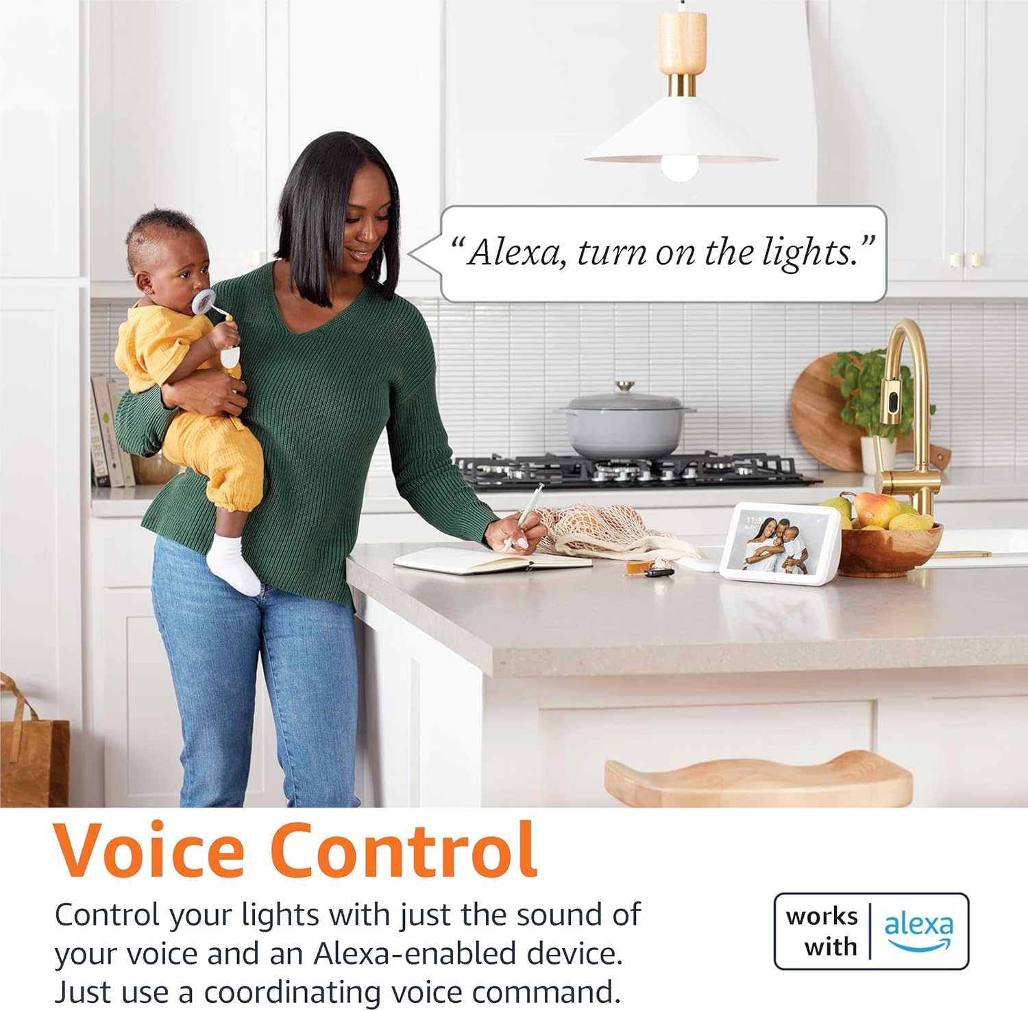 DIMMABLE: Adjust brightness levels anywhere between 5% to 100% by time of day and your mood. While you are busy multi-tasking, just say “Alexa, dim the living room to 50%” Note: bulbs are dimmable via Alexa app or voice control only (not compatible with a physical dimmer switch)