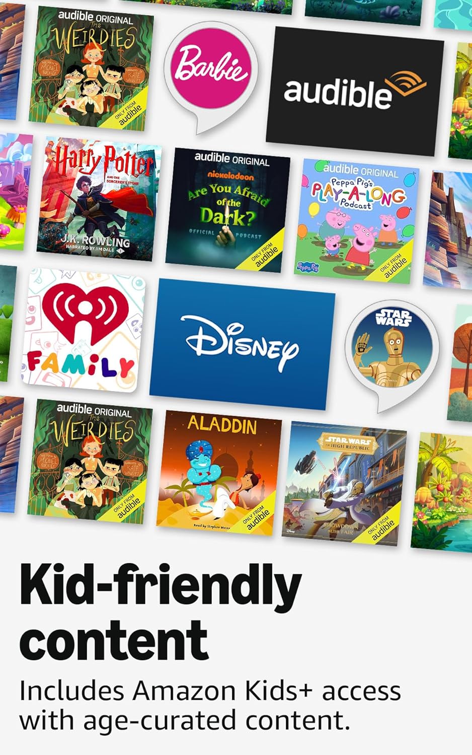ECHO DOT KIDS – Our most popular and cutest smart speaker with Alexa, made for kids (not a toy). The improved speaker delivers clearer vocals and rich, vibrant sound.