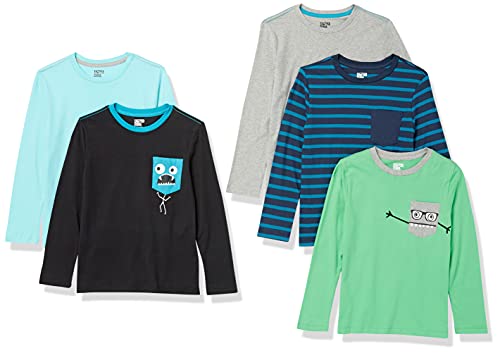 Amazon Essentials Boys’ Long-Sleeve T-Shirts, Pack of 5, Monsters/Multicolor/Stripe, Medium