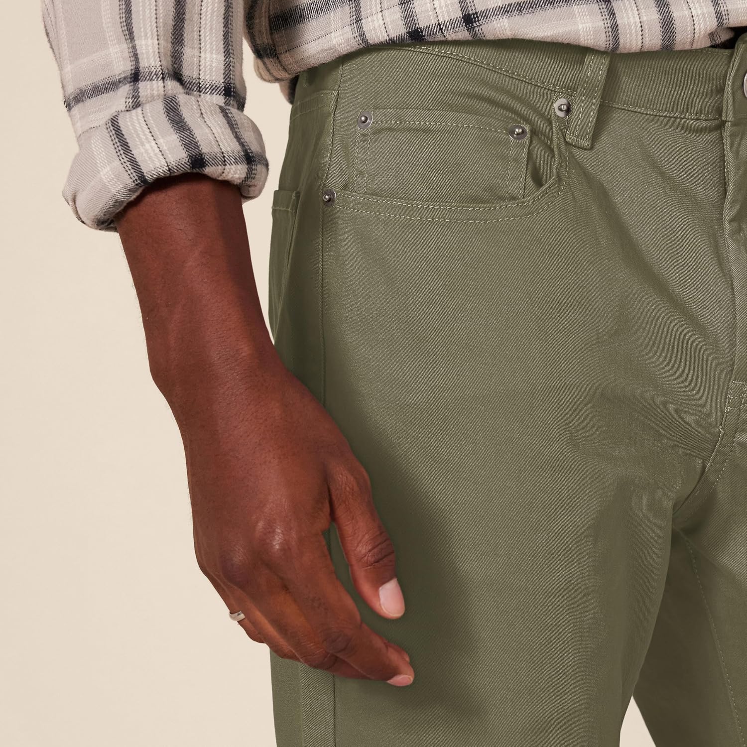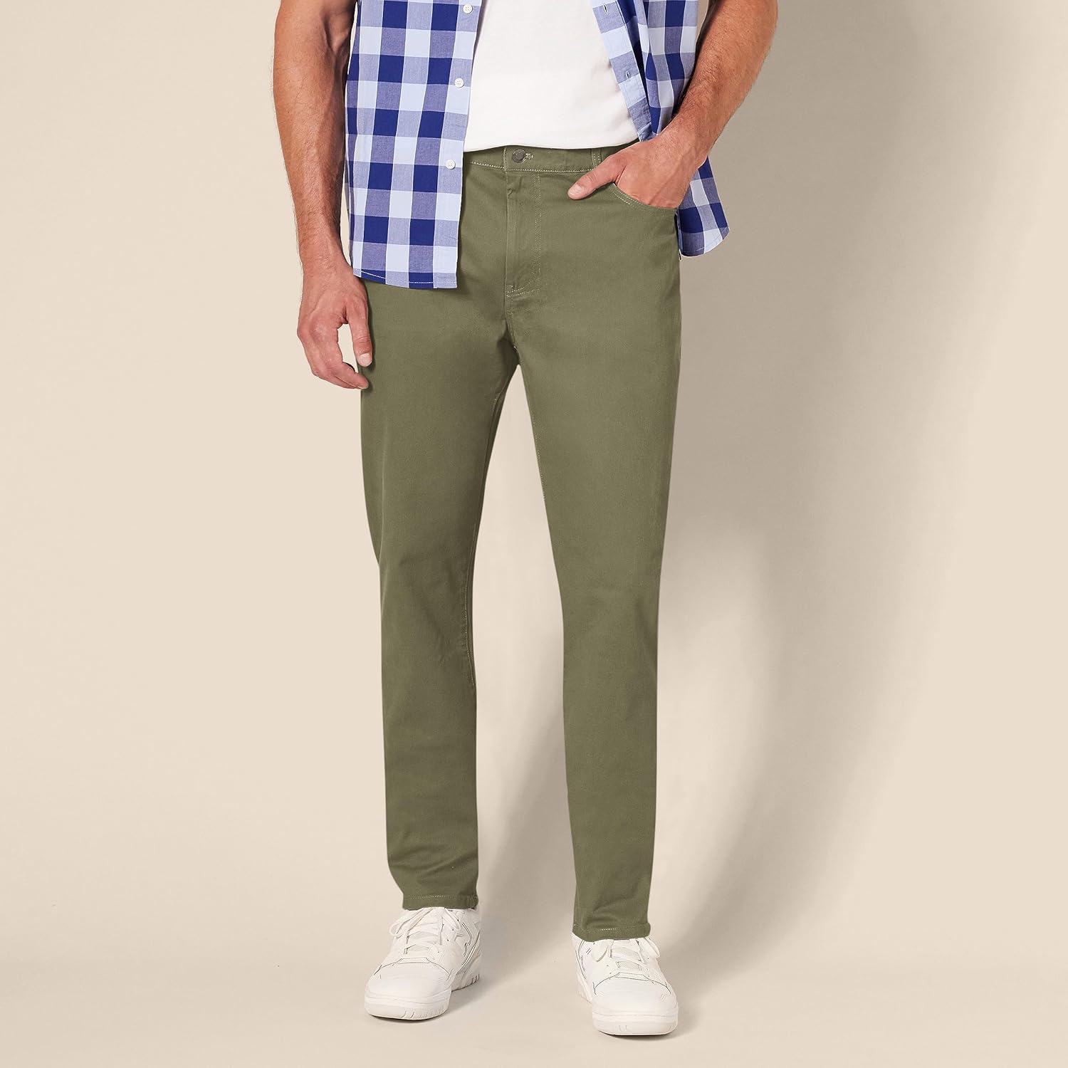 With an athletic fit, these men’s casual pants are crafted to offer extra room in the hip and thigh, sitting comfortably at the waist for a flattering silhouette. The stretch pants for men are made from high-quality stretch cotton twill, providing ease of movement and a fit that adapts to your daily activities. These men work pants come in a classic, jeans-inspired 5-pocket style, making them great for both casual outings and more formal occasions. Whether you’re heading to the office or enjoying a leisurely day, these casual pants for men offer the versatility you need. Details such as a shank button closure, rivets, and a zipper fly provide durability and a polished look. At Amazon Essentials, we pride ourselves on delivering reliable, high-quality, and affordable apparel that fits seamlessly into your lifestyle. Our consistent sizing and attention to detail mean you can shop with confidence, knowing that every piece is designed to meet the highest standards of comfort and fashion. Our essential pants for men will elevate your daily wardrobe effortlessly.