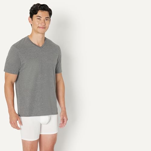 Amazon Essentials Men\’s Regular-Fit Short-Sleeve V-Neck, Pack of 6, Grey Heather, Large