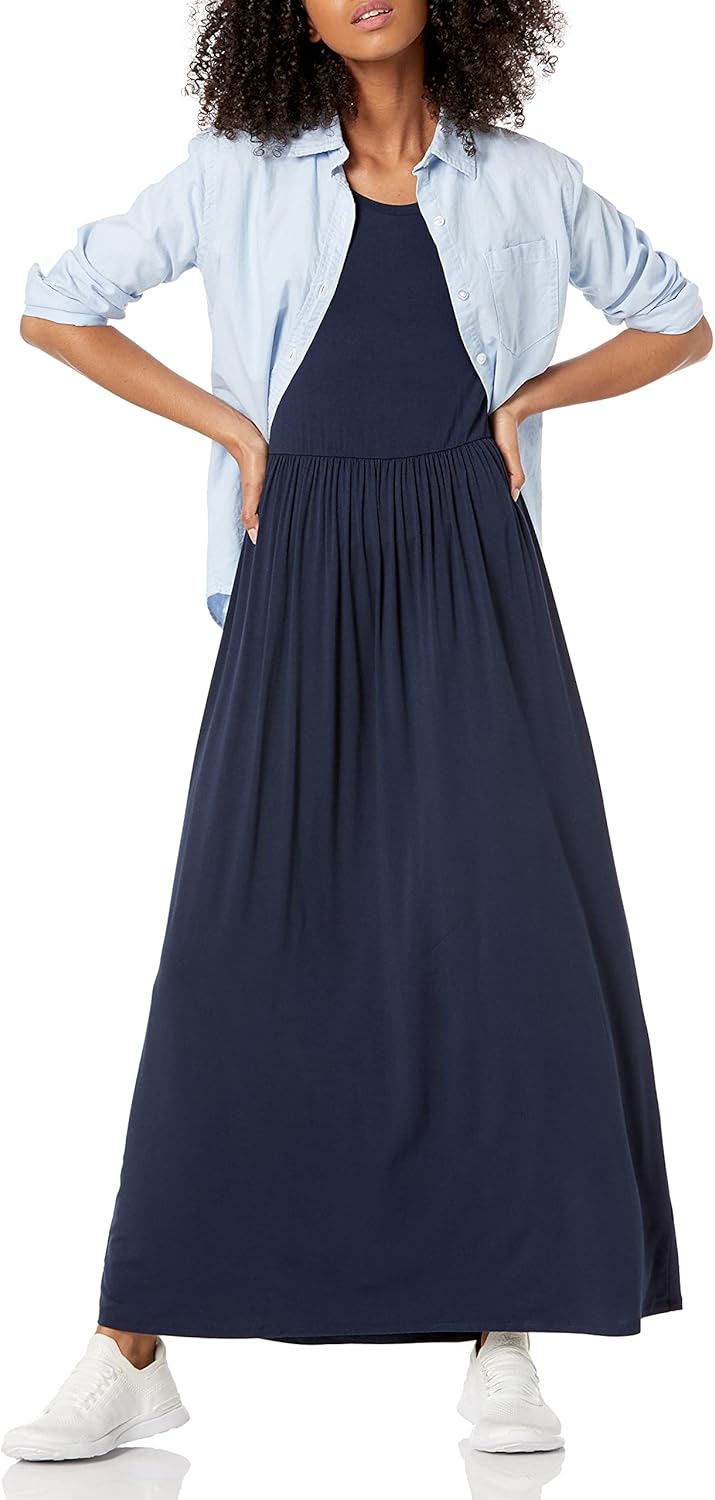 Amazon Essentials Women’s Short-Sleeve Waisted Maxi Dress (Available in Plus Size)