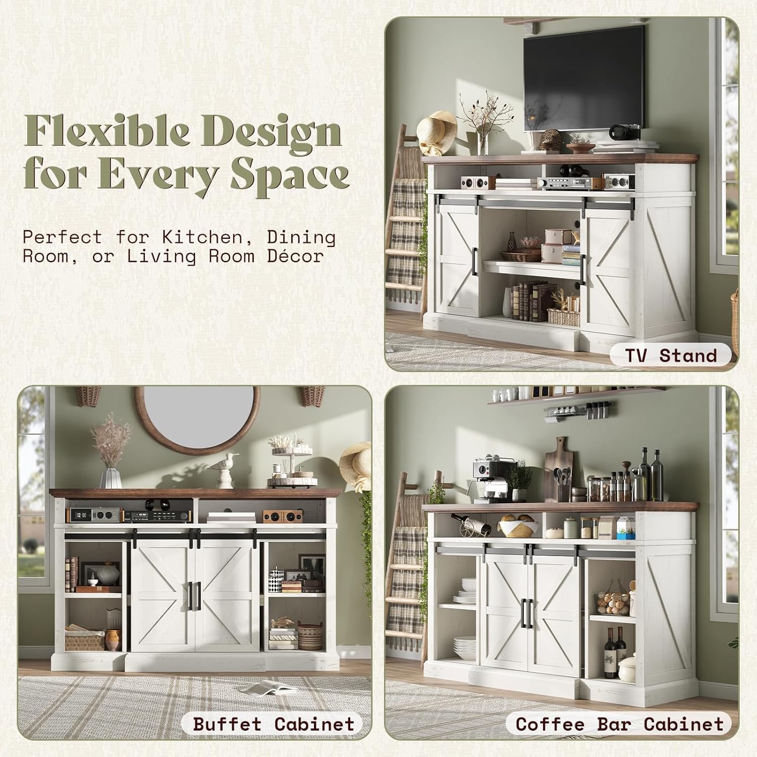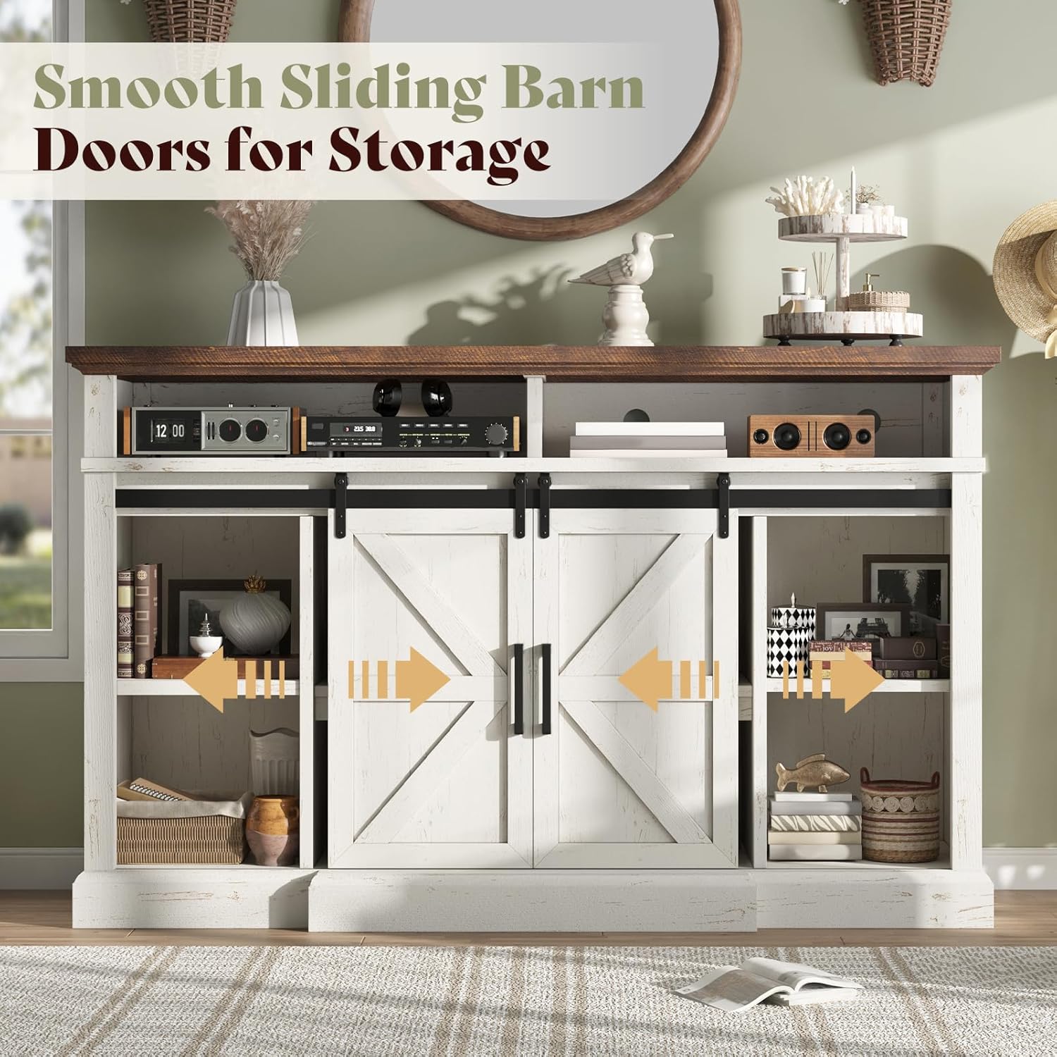 【Barn Door Design Meets Rustic Charm】 Each piece features an X-frame barn door style that blends farmhouse character with modern practicality. Sliding doors and cross-panel accents add visual texture while providing flexible storage for your living space