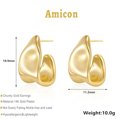Chunky Gold Earrings:14K gold plated chunky gold earrings, gorgeous design makes these statement earrings an ideal addition to any party look, lightweight gold earrings not heavy to wear. you can wear all day without any pressure