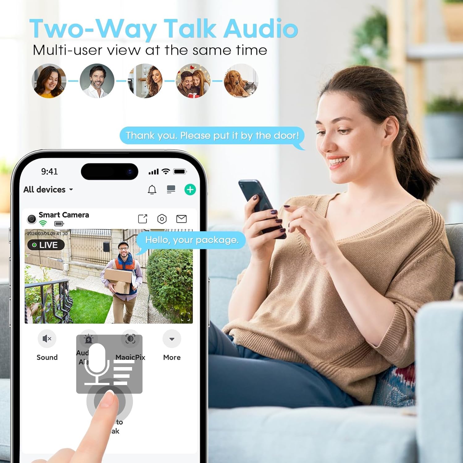 2K HD Quality for Ultra-Clear Surveillance – Enjoy crystal-clear video with 2K HD resolution, ensuring every detail is visible day or night. Ideal for both indoor and outdoor use, this wireless cameras for home security with exceptional night vision for clear, reliable footage in low-light conditions