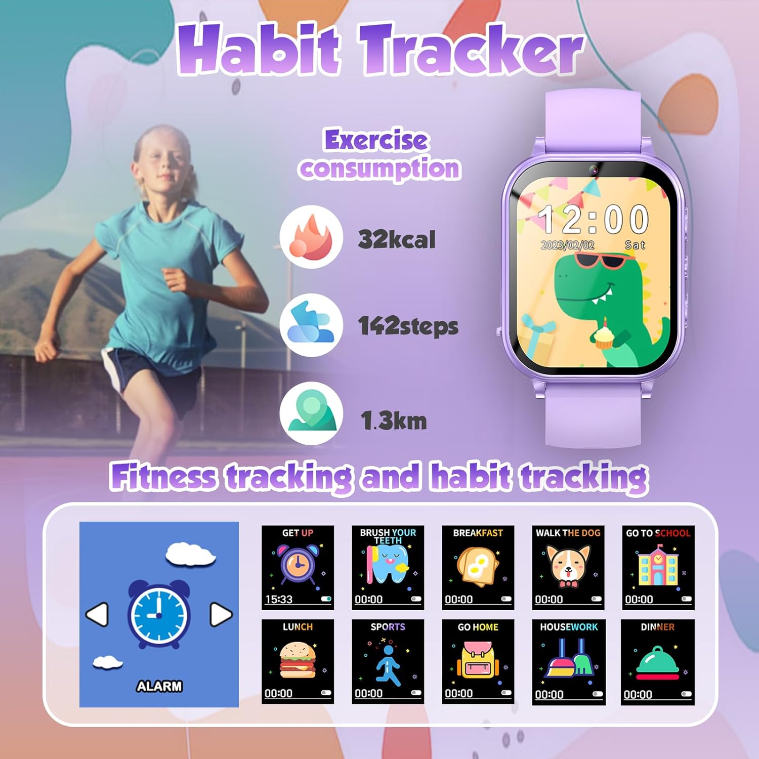 Pedometer: Track steps and calories burned to encourage physical activity. The built-in pedometer helps kids stay active and healthy by monitoring their daily steps and calorie intake.
