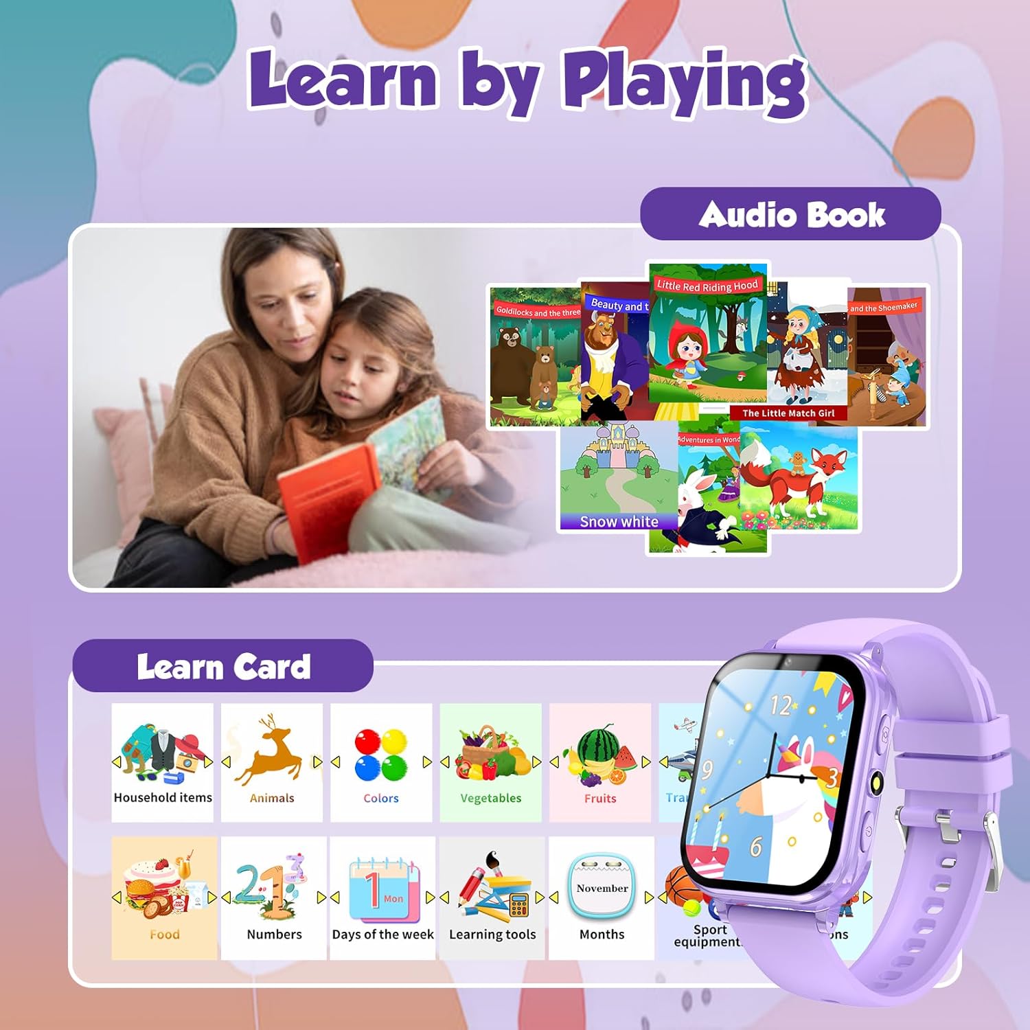 AMYJOY Kids Game Watch Boys Girls with Puzzle Games Music Player Camera HD Touchscreen, Kids Toys Birthday Gifts for Girls Boys Age 6-12 (Purple)
