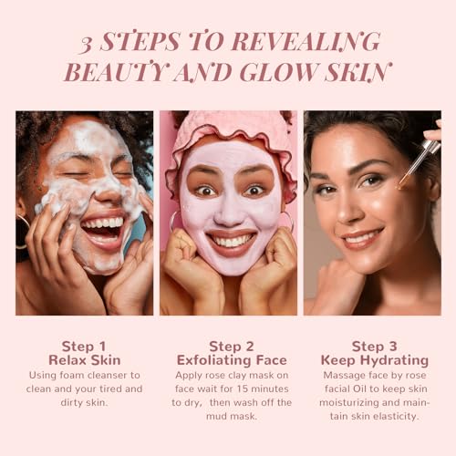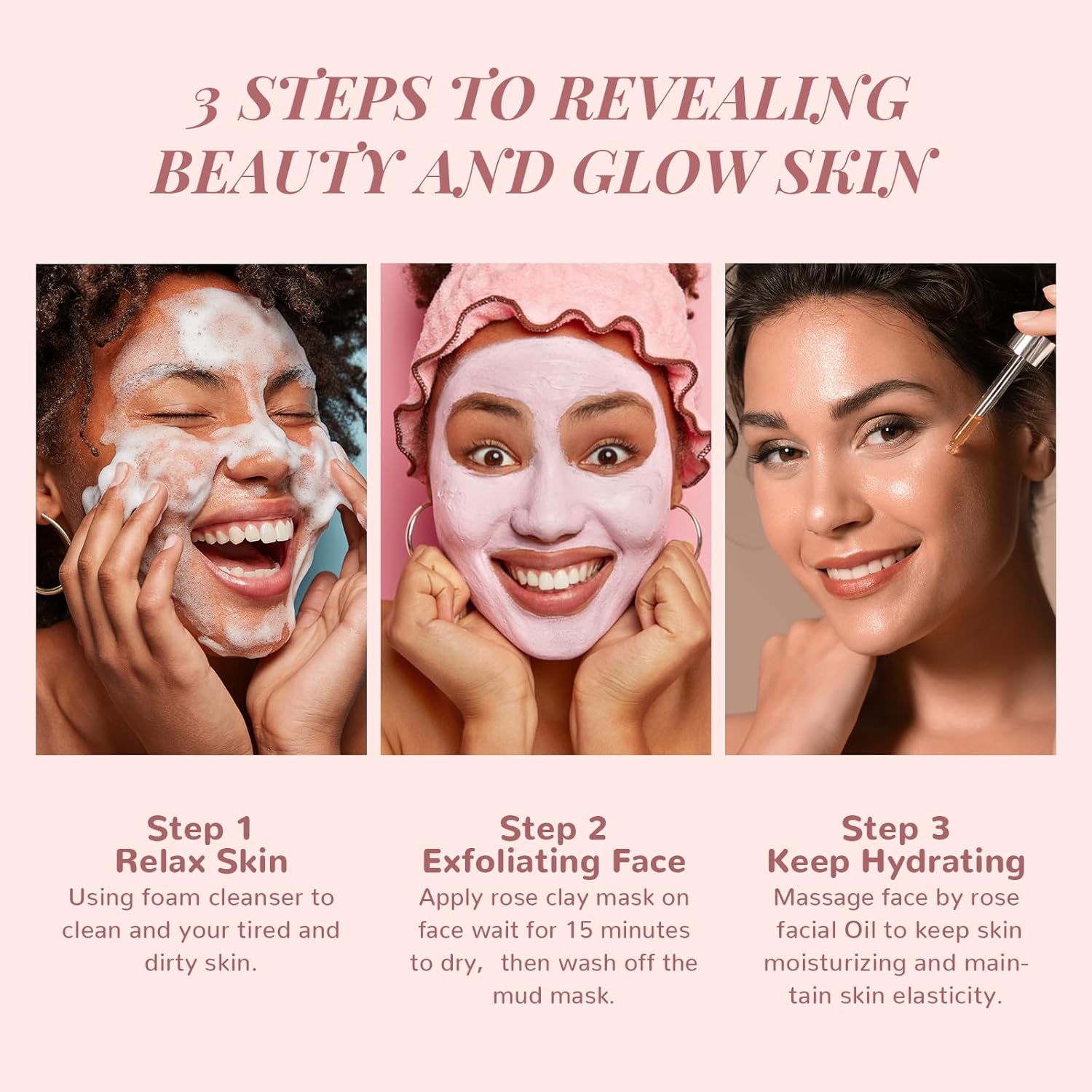 ANAI RUI Purify, Hydrating Rose Skincare Gift Set, Holiday Gift for Women, Facial Skincare Kit for Women, Rose & Squalane Face wash and Moisturizer Set with Clay Mask, Face Cleanser and Facial Oil