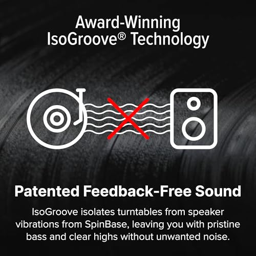 CRYSTAL-CLEAR PLAYBACK: Thanks to IsoGroove Technology, the SpinBase MAX 2 lets you place your turntable directly on the speaker without worrying about feedback or vibrations. Just enjoy pure, uninterrupted sound.